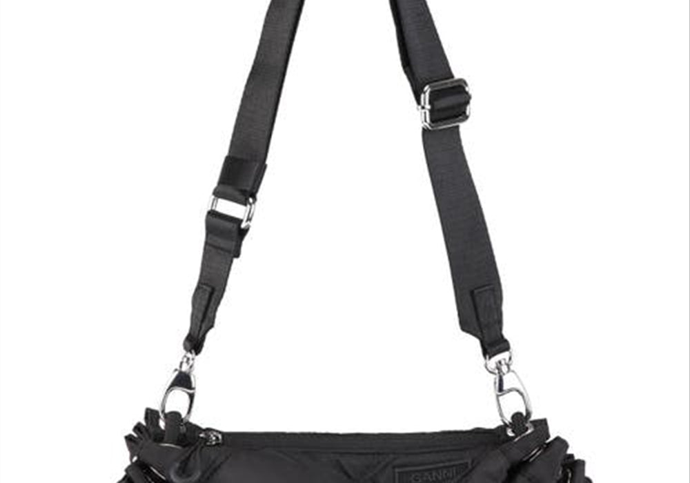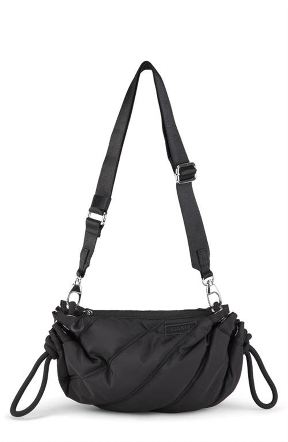 Bolsa de viagem pequena acolchoada de poliéster reciclado Ganni, preta