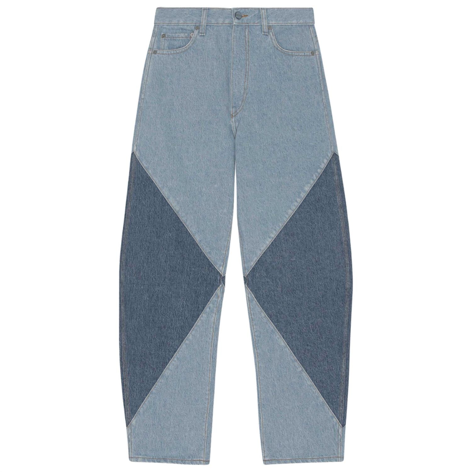 Uma silhueta elegante e surpreendentemente versátil. Ganni Calça jeans Stary Algodão orgânico em alvejante Cutline Cintura alta Perna larga Denim Patchwork Perna curva e cônica Ajuste relaxado Peso médio 5 bolsos Passadores de cinto Fecho de zíper/botão