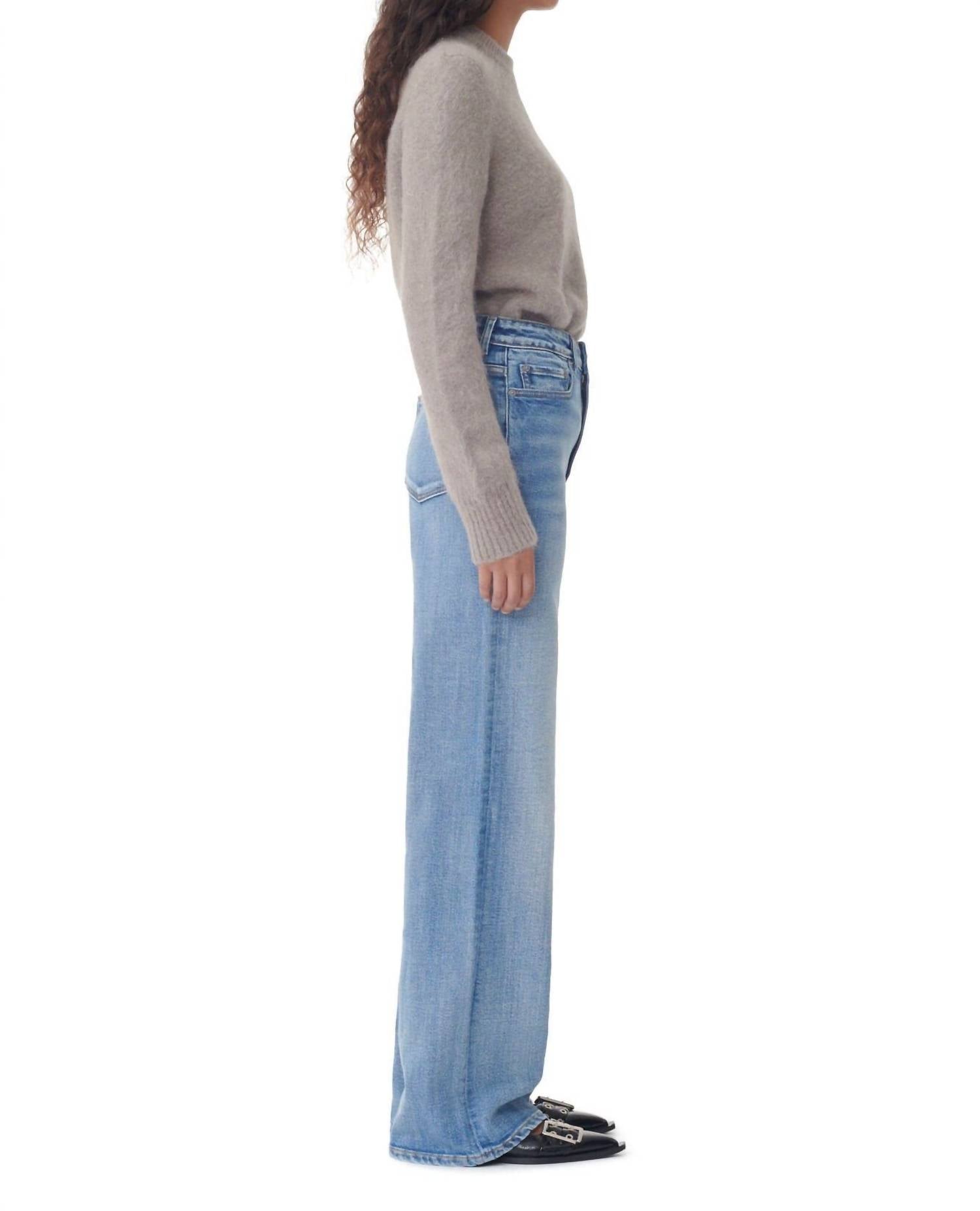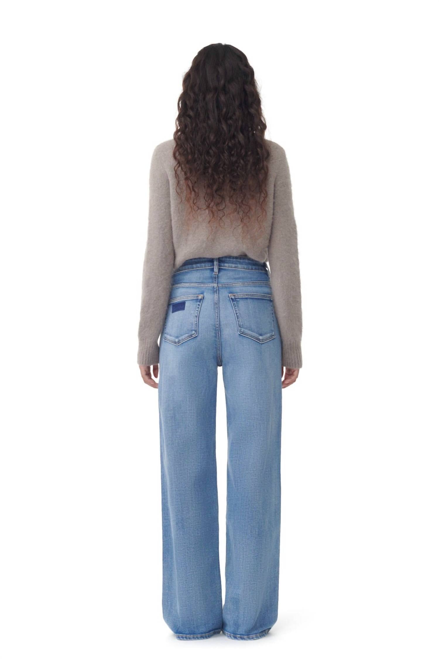 Combine esta calça jeans de perna larga com mules, slides ou suas sandálias de tiras favoritas. Uma escolha chique em Azul Médio Vintage que combina estilo e sustentabilidade com naturalidade. Desenhada com corte reto no quadril e nas coxas, a calça jeans de perna larga oferece um caimento relaxado com cós alto. Confeccionada em 99% algodão orgânico e 1% elastano. Apresenta um estilo clássico de 5 bolsos, completo com passantes para cinto e fecho seguro por botão. O logotipo exclusivo da GANNI adorna o bolso traseiro.