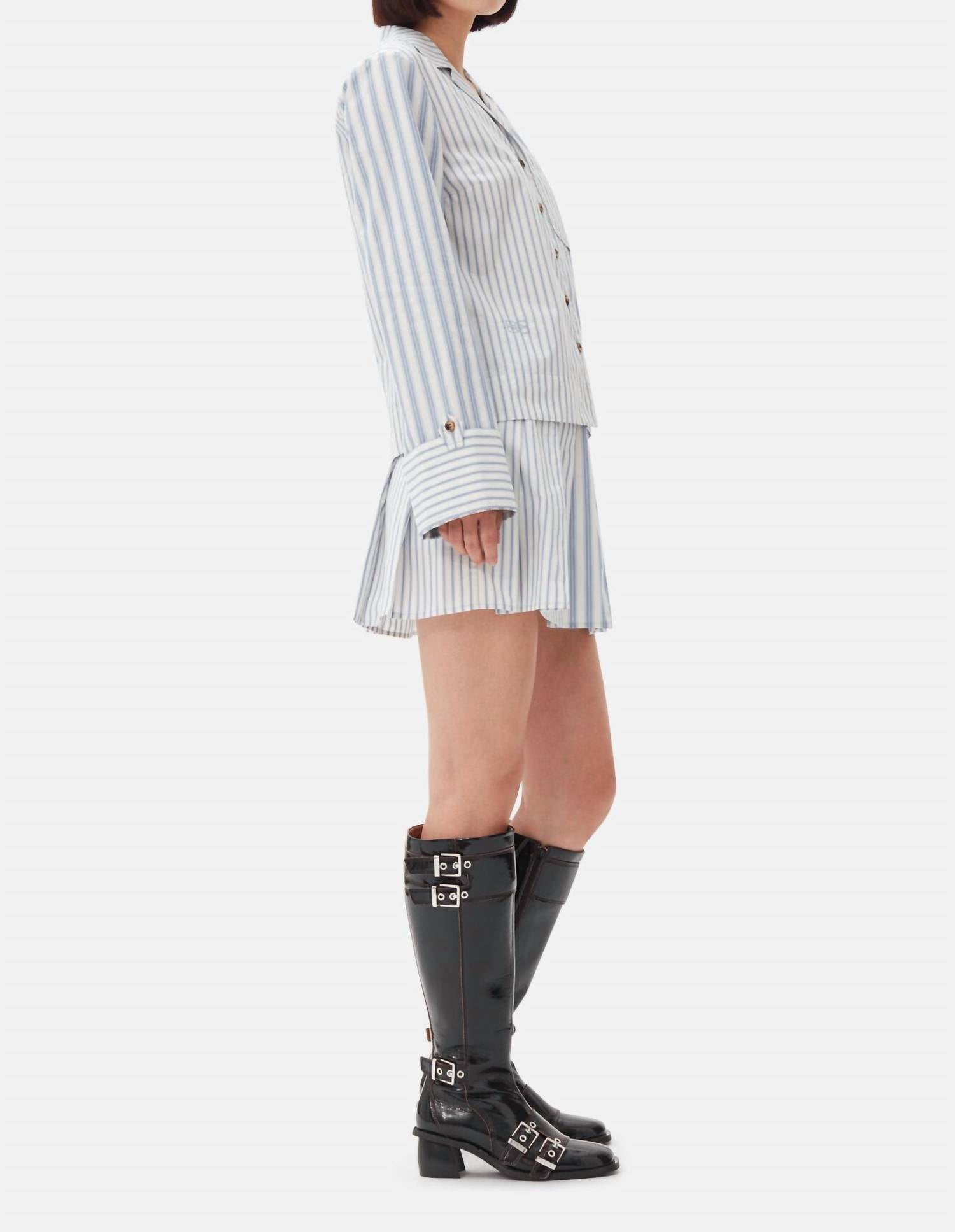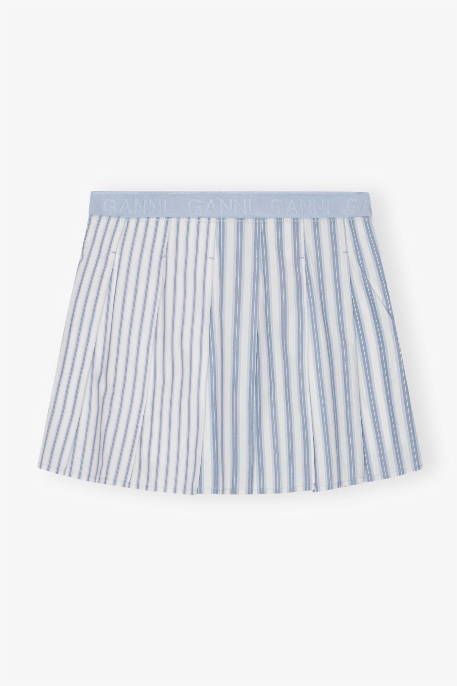 A minissaia perfeita existe. Confeccionada em 100% algodão orgânico, oferece uma opção confortável e estilosa para o seu guarda-roupa. Apresenta um padrão listrado divertido. Inclui um design plissado e um cós elástico adornado com logotipos GANNI para um ajuste seguro. Desenhada para mulheres que seguem as tendências da primavera, perfeita para viagens e ocasiões de trabalho. Pode ser lavada na máquina.