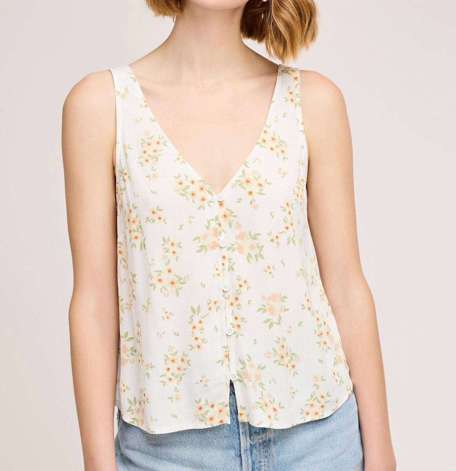 Show a little skin in this cute and casual crop top. The Women's Celeste Top by Gentle Fawn is a stylish choice for your summer wardrobe, showcasing a unique white floral pattern. This sleeveless crop top features a V-neck front and back, offering a sleek silhouette. Enjoy the ease of a functional button closure for a personalized fit. With its maximalist trend design, it's perfect for vacation wear.