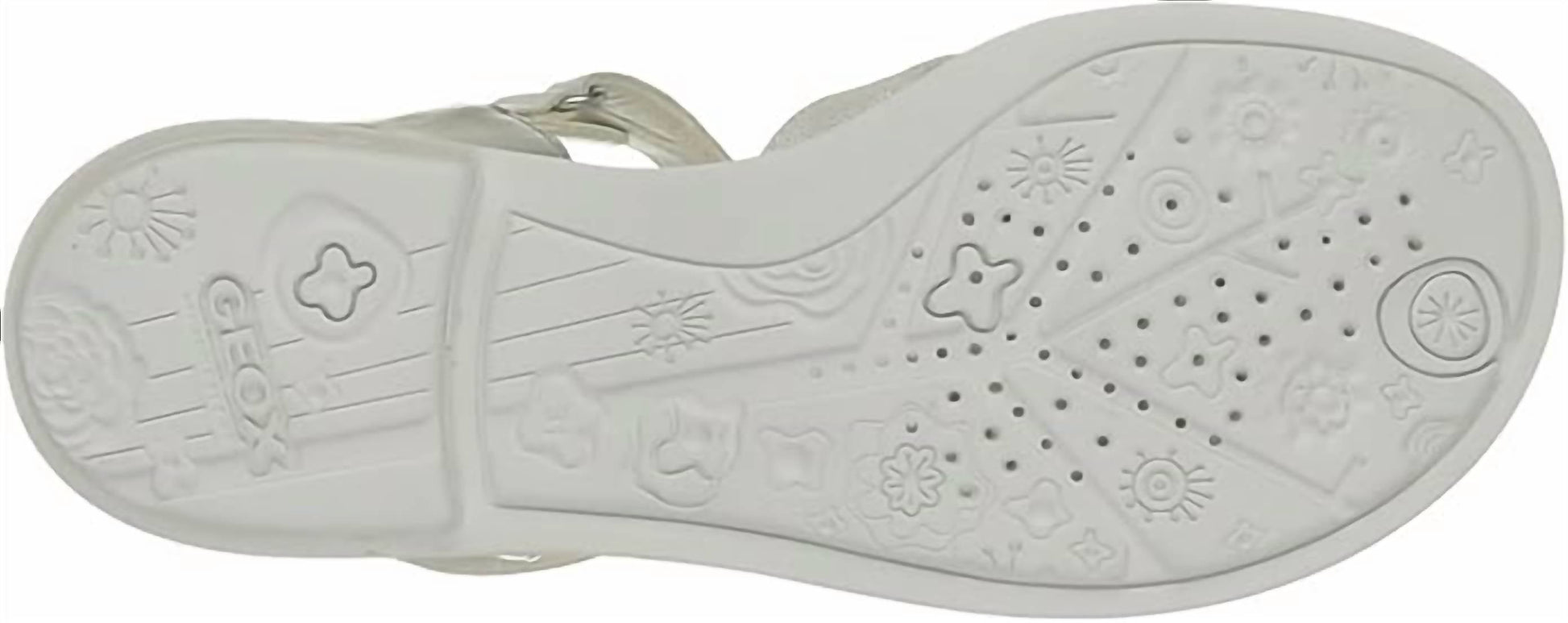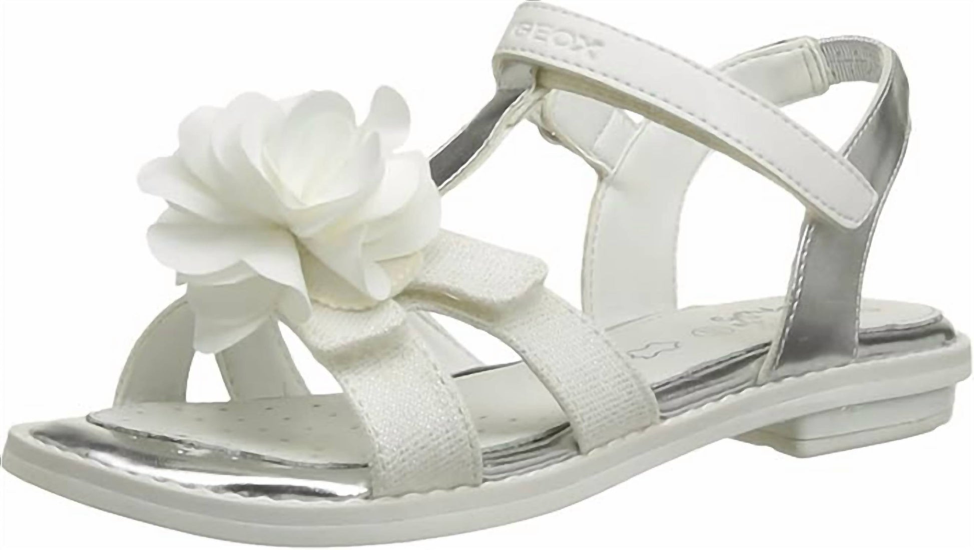 Crafted from high-quality leather, this sandal in a chic white and silver color scheme offers a breathable fit for everyday adventures. Its open toe and flat heel design ensure ease of movement and all-day wearability. An ideal choice for any warm weather outing.