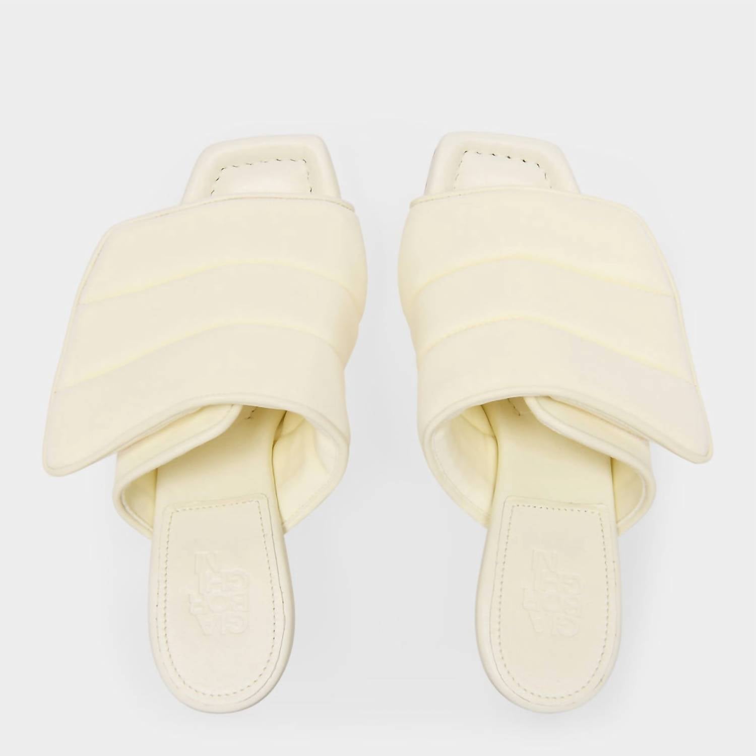 Vestidos fluidos, calças cropped e até macacões... esta sandália combina com todos! Esta sandália feminina Gia 4. Salto de 85 mm, tira de velcro. Composição: Scuba - 100% couro napa. Cor: Marfim, Amarelo-manteiga. Caimento: Fiel ao tamanho.