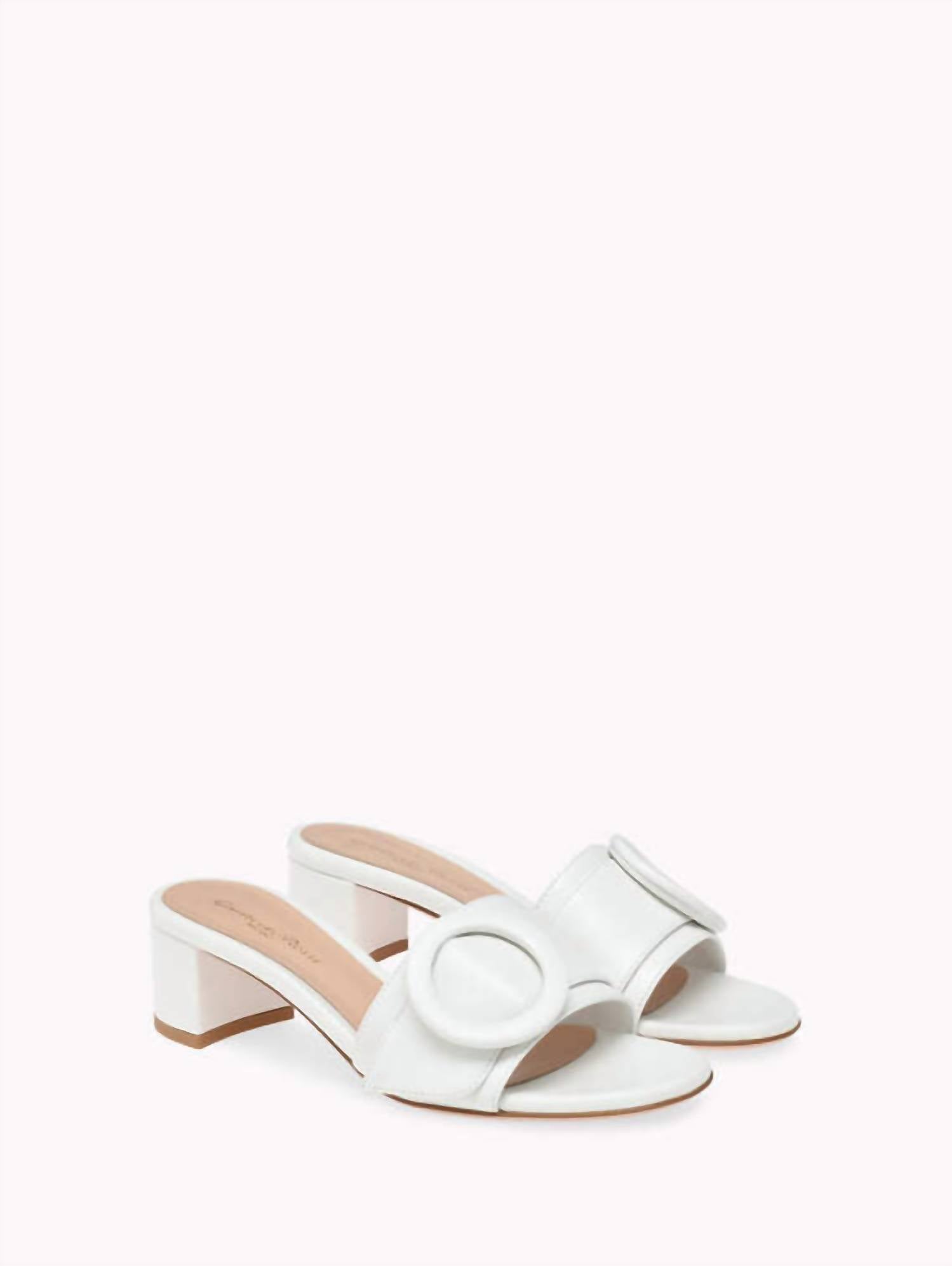 Clássico e fofo, perfeito para usar o dia todo. Adoramos esta sandália. Entre na primavera com as sandálias femininas de couro com fivela e salto baixo da Gianvito Rossi, perfeitas para festas de fim de ano e celebrações da Páscoa. Estas sandálias estilo slide apresentam bico aberto com cabedal de faixa larga, adornado com um elegante detalhe de fivela para um toque de sofisticação. Confeccionadas inteiramente em couro luxuoso, tanto o forro quanto o solado oferecem qualidade e conforto. Ideais para adicionar um toque streetwear ao seu look, estas sandálias brancas de couro preto trazem um toque italiano a qualquer guarda-roupa.