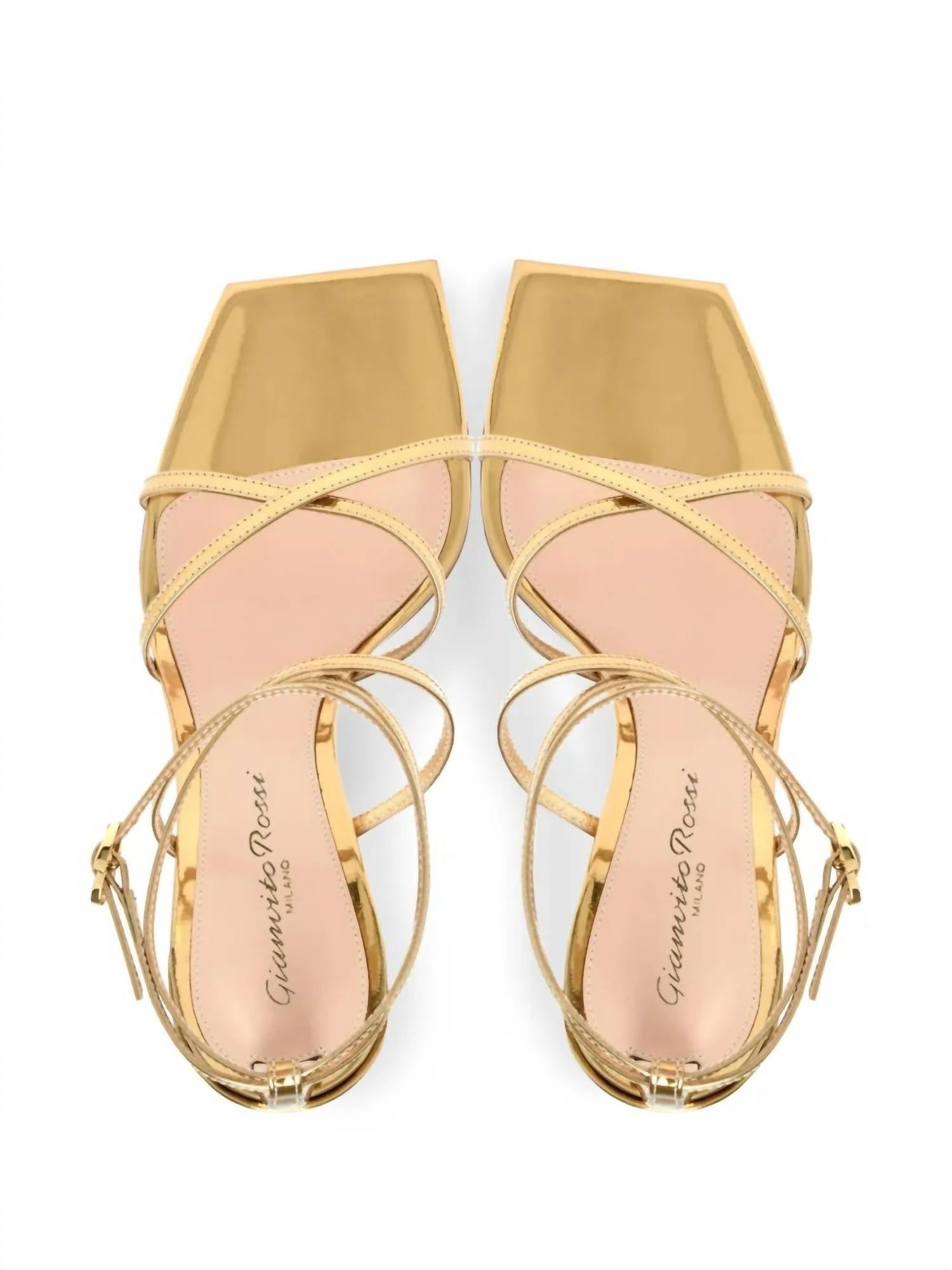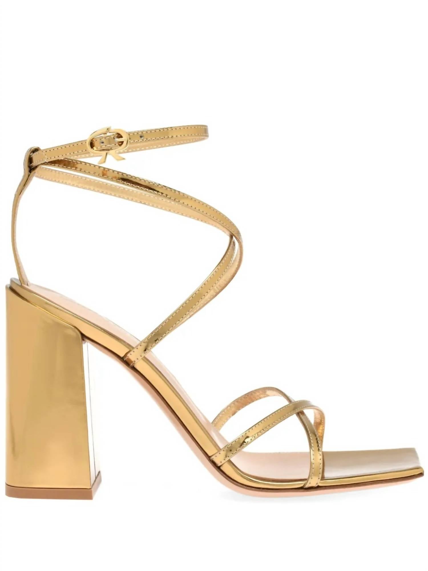 Entre em sintonia com a elegância com a Sandália Ludovica de Gianvito Rossi, uma declaração em dourado luxuoso. Confeccionada em 100% couro, esta sandália de salto italiano oferece um design sofisticado de bico aberto e um salto bloco estiloso. Ideal para realçar qualquer look, ela se baseia nos tamanhos americanos (EUA), garantindo um ajuste perfeito para a mulher exigente. Experimente o que há de melhor na moda primavera/verão 2024.