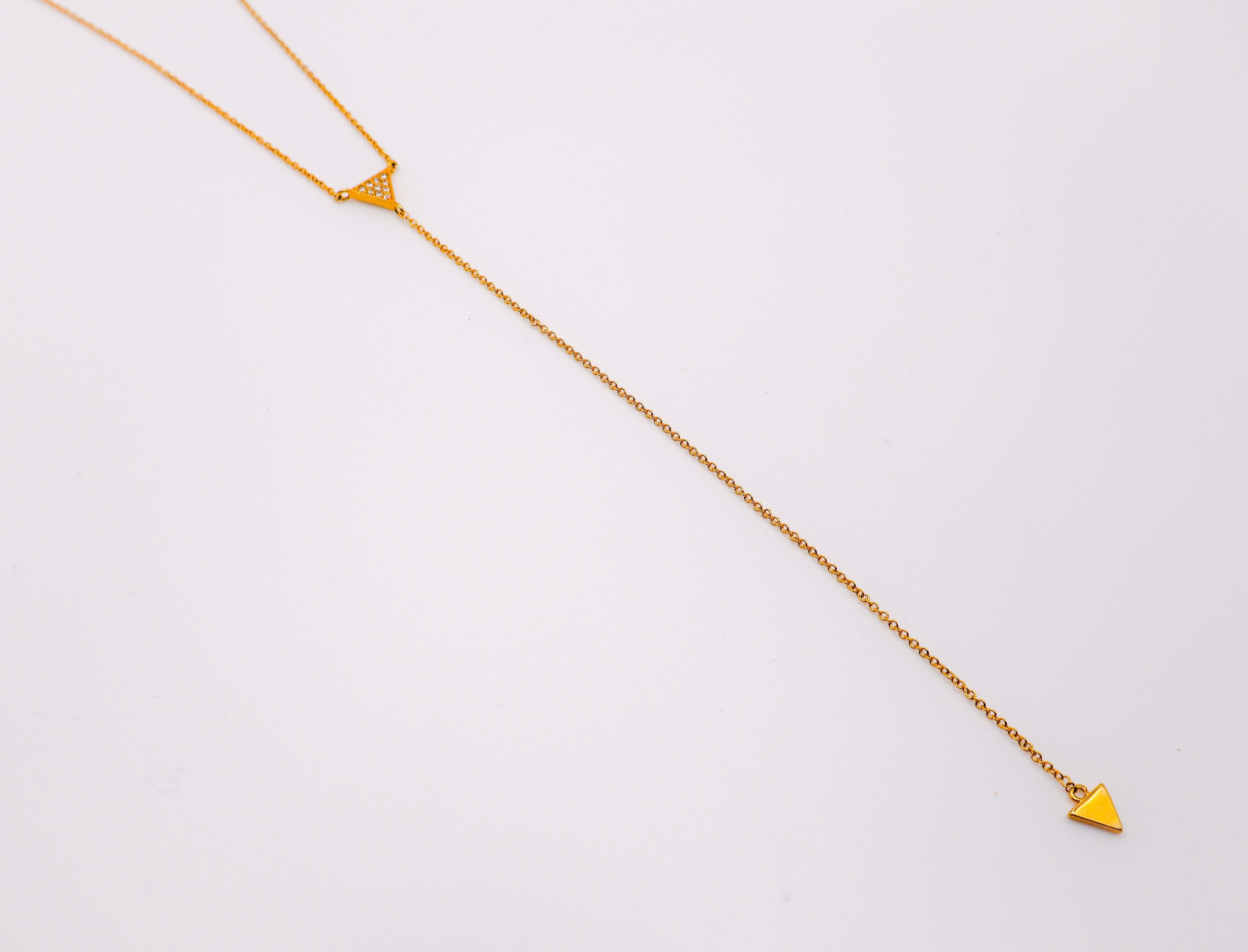 Apesar de sua aparência delicada, este colar de ouro leve foi projetado para ser durável, tornando-o perfeito para uso diário ou ocasiões especiais. Versátil e elegante, o Colar Triângulo Dourado complementa uma ampla gama de looks e estilos pessoais, adicionando um toque refinado de joias minimalistas à sua coleção. Eleve seu visual com esta peça requintada que combina beleza atemporal e charme moderno em um design elegante.