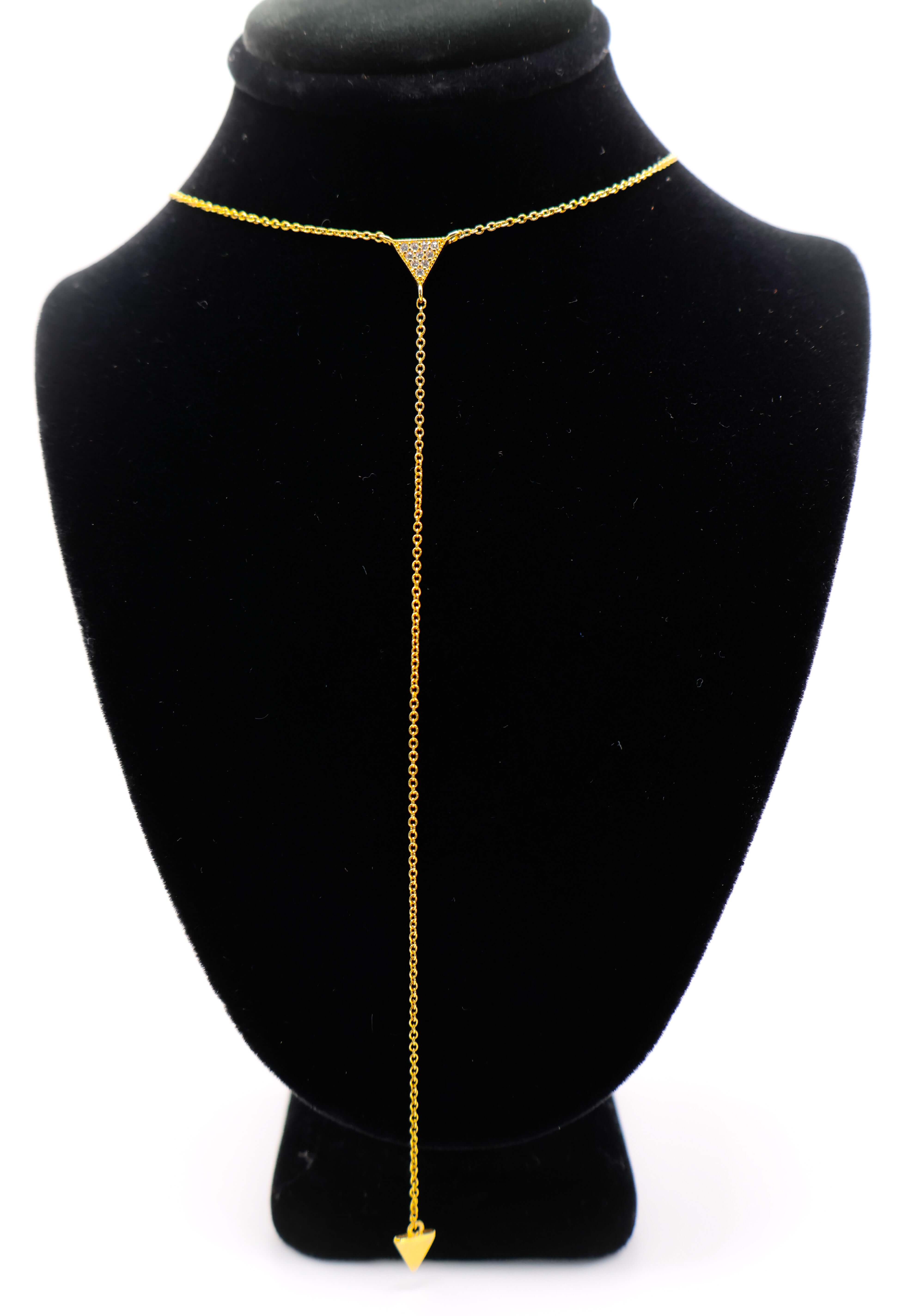 Apresentamos o Colar Delight Triângulo Dourado , uma delicada joia banhada a ouro que redefine a elegância através de um design minimalista. Com um pequeno pingente triangular graciosamente suspenso em uma fina barra vertical, este colar oferece uma combinação perfeita de estilo geométrico moderno e sofisticação sutil. Feito com precisão e acabamento em ouro brilhante, ele incorpora elegância contemporânea e charme natural, ideal para mulheres que apreciam acessórios discretos, mas chamativos.