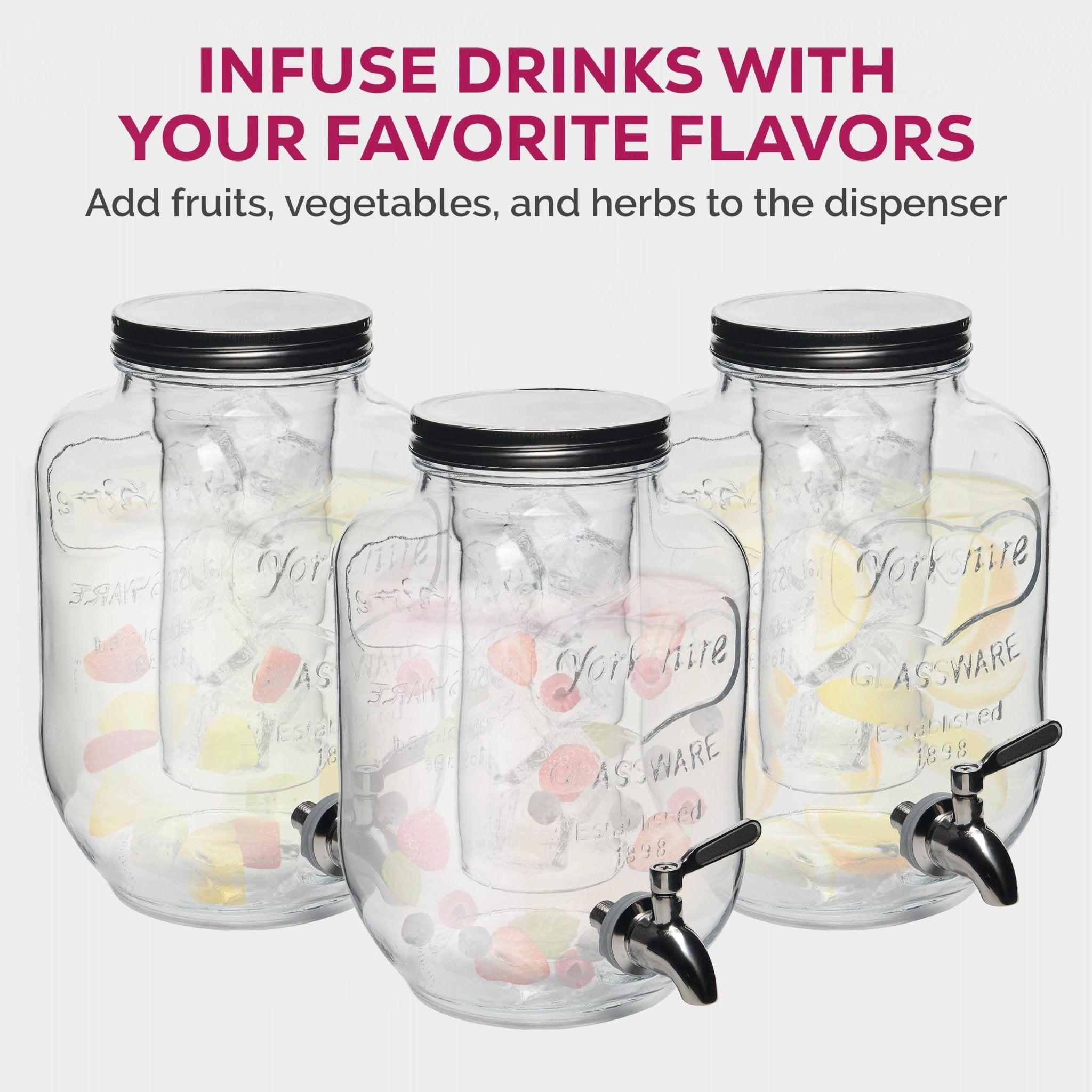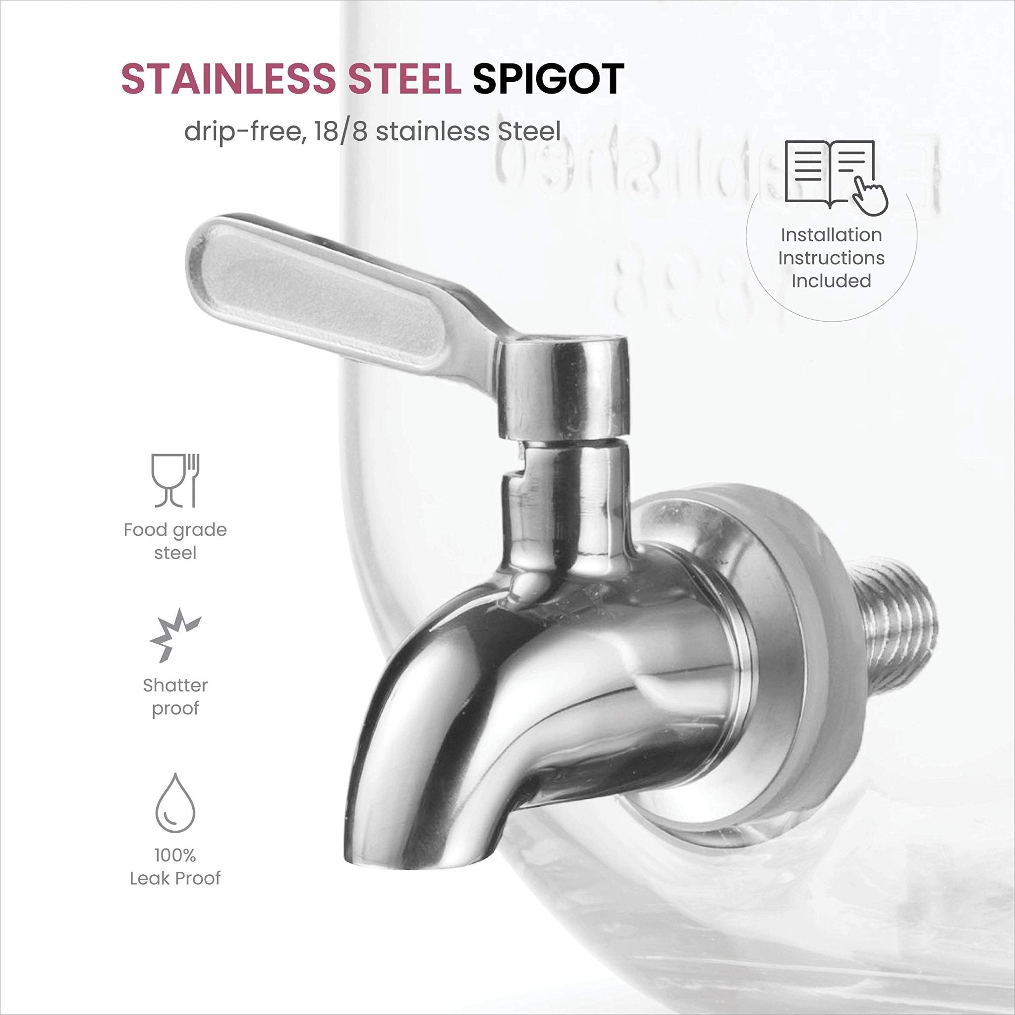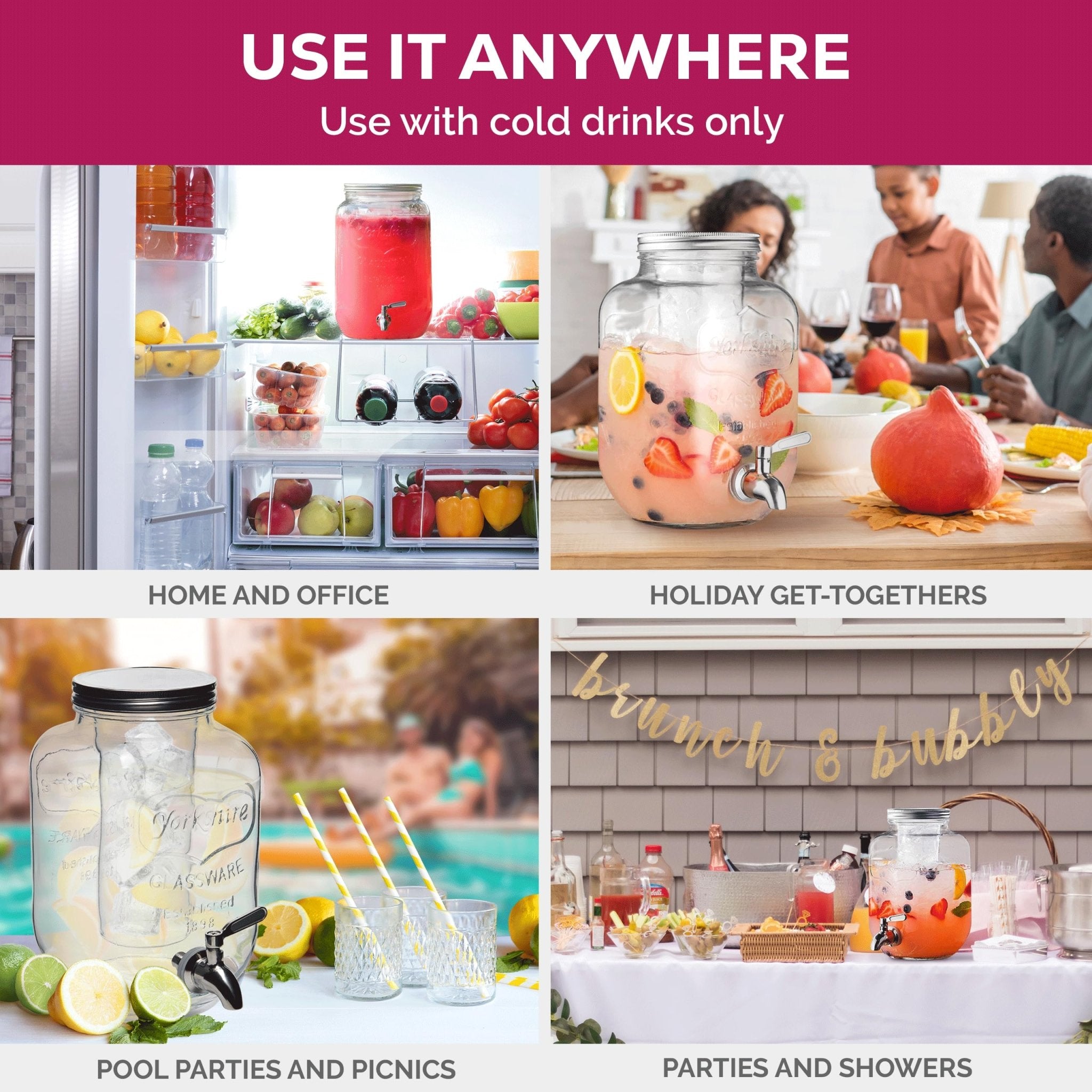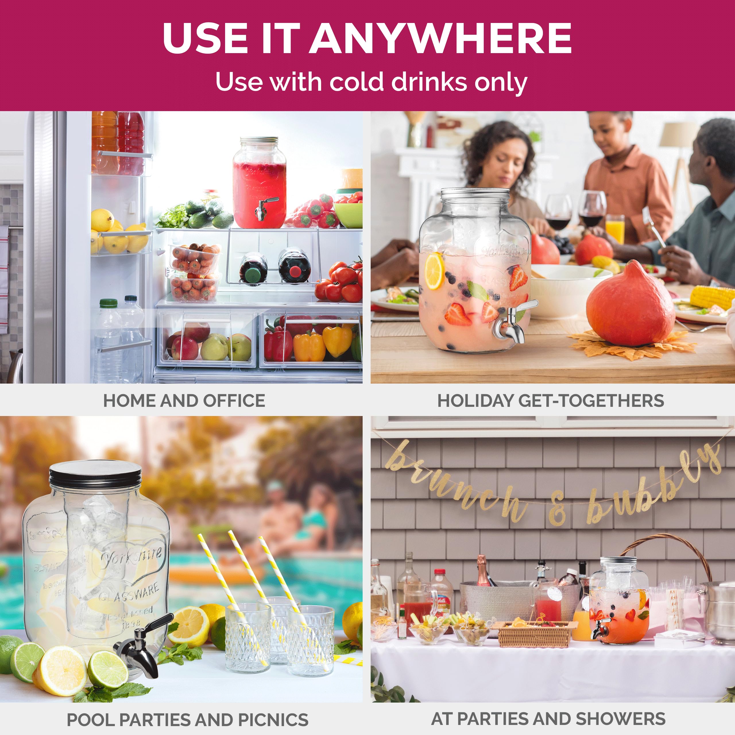 • TAMPA DE AÇO INOXIDÁVEL - O dispensador de água de vidro possui uma tampa de lata que impede a entrada de insetos ou detritos em suas bebidas. Para limonada fresca, chá gelado, água com infusão, ponche, sucos e sangria.