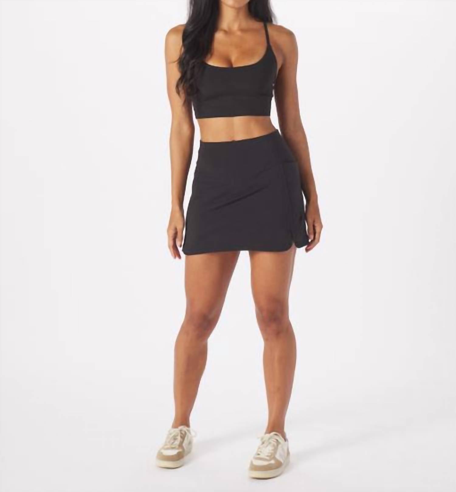 Vista sua camiseta favorita para um visual mais descontraído. Com um padrão sólido, esta minissaia apresenta cintura alta, corte em A e comprimento de 39 cm, além de shorts embutidos e bolsos laterais para maior praticidade. O tecido elástico FORMAONE garante um ajuste confortável, enquanto o fecho de pressão facilita o uso.