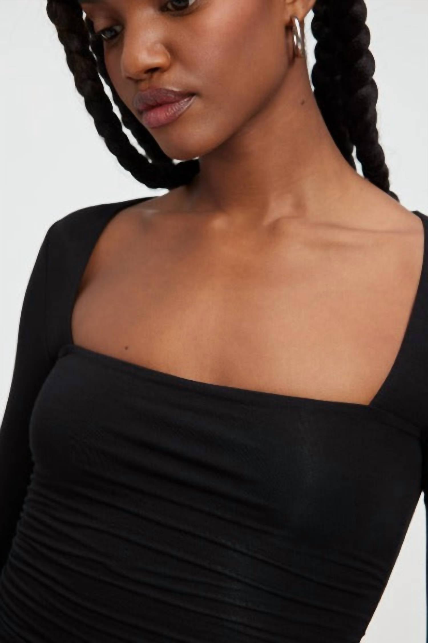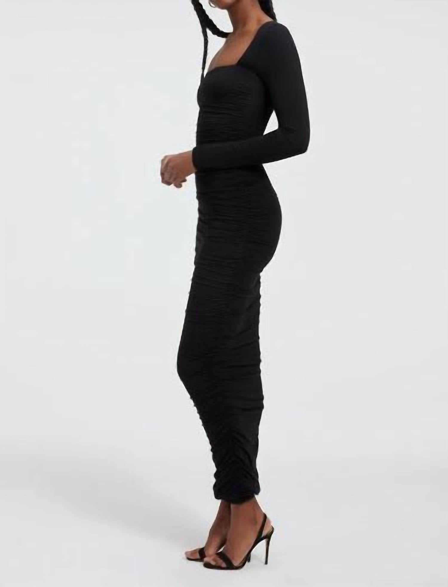 Quem não ama um bom vestido longo? Este você vai usar em todas as estações. O Vestido Longo com Decote Quadrado e Franzido da GOOD AMERICAN é uma escolha deslumbrante para eventos noturnos ou ocasiões especiais. Este elegante vestido longo preto apresenta mangas compridas e um decote quadrado moderno, com um elegante detalhe franzido que valoriza sua silhueta justa. Confeccionado em jersey supermacio e elástico, oferece conforto e um caimento perfeito. O fecho é prático e fácil de calçar. Instruções de cuidado: Lavar à mão e secar no varal.