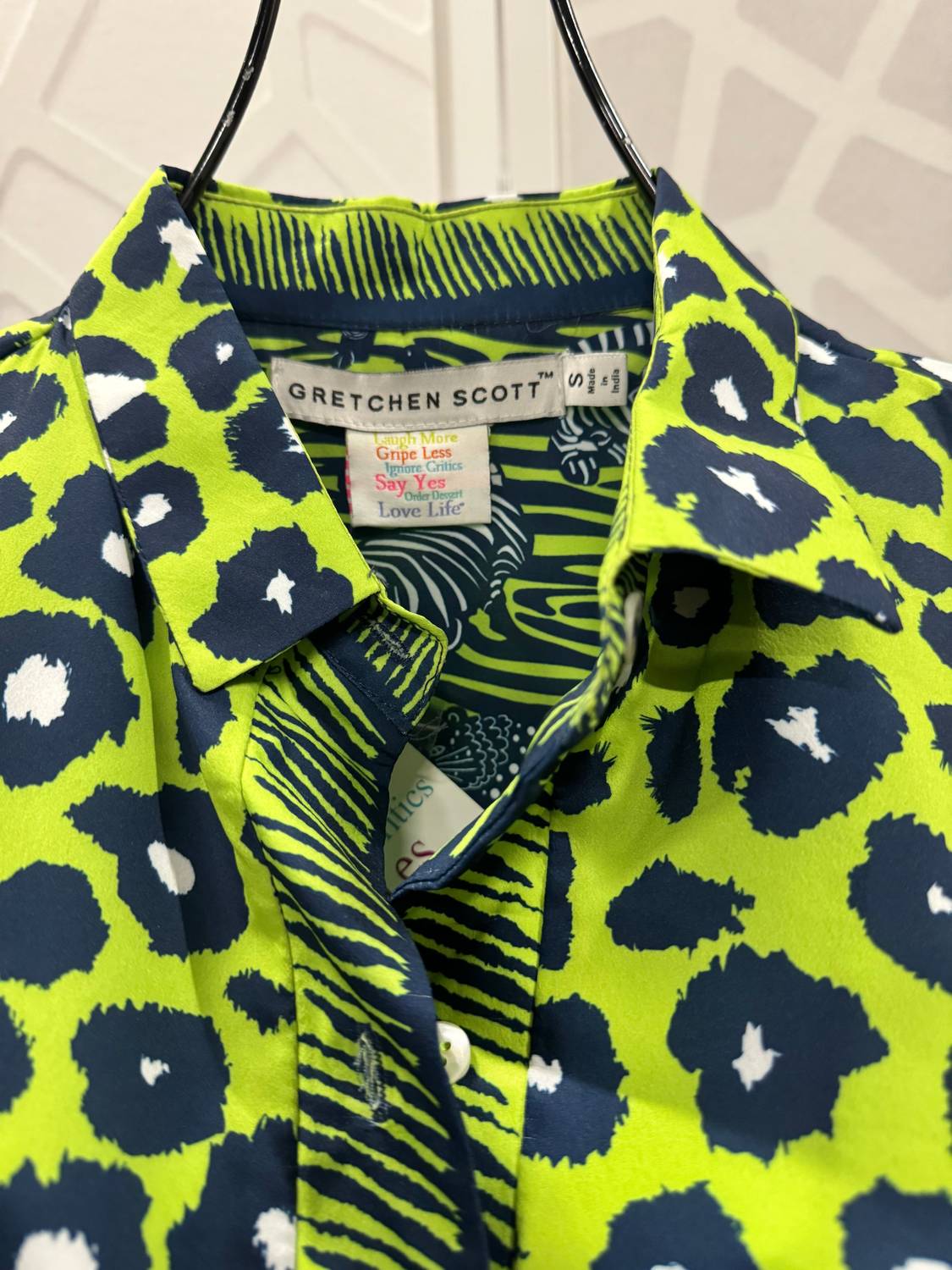Estampa marcante de chita em azul-marinho-limão e verde. Com mangas e punhos longos, combina tendência e sofisticação sem esforço. Possui gola clássica e fecho prático de botões. Garante estilo e funcionalidade. Os cuidados são simples, com instruções de lavagem à máquina.