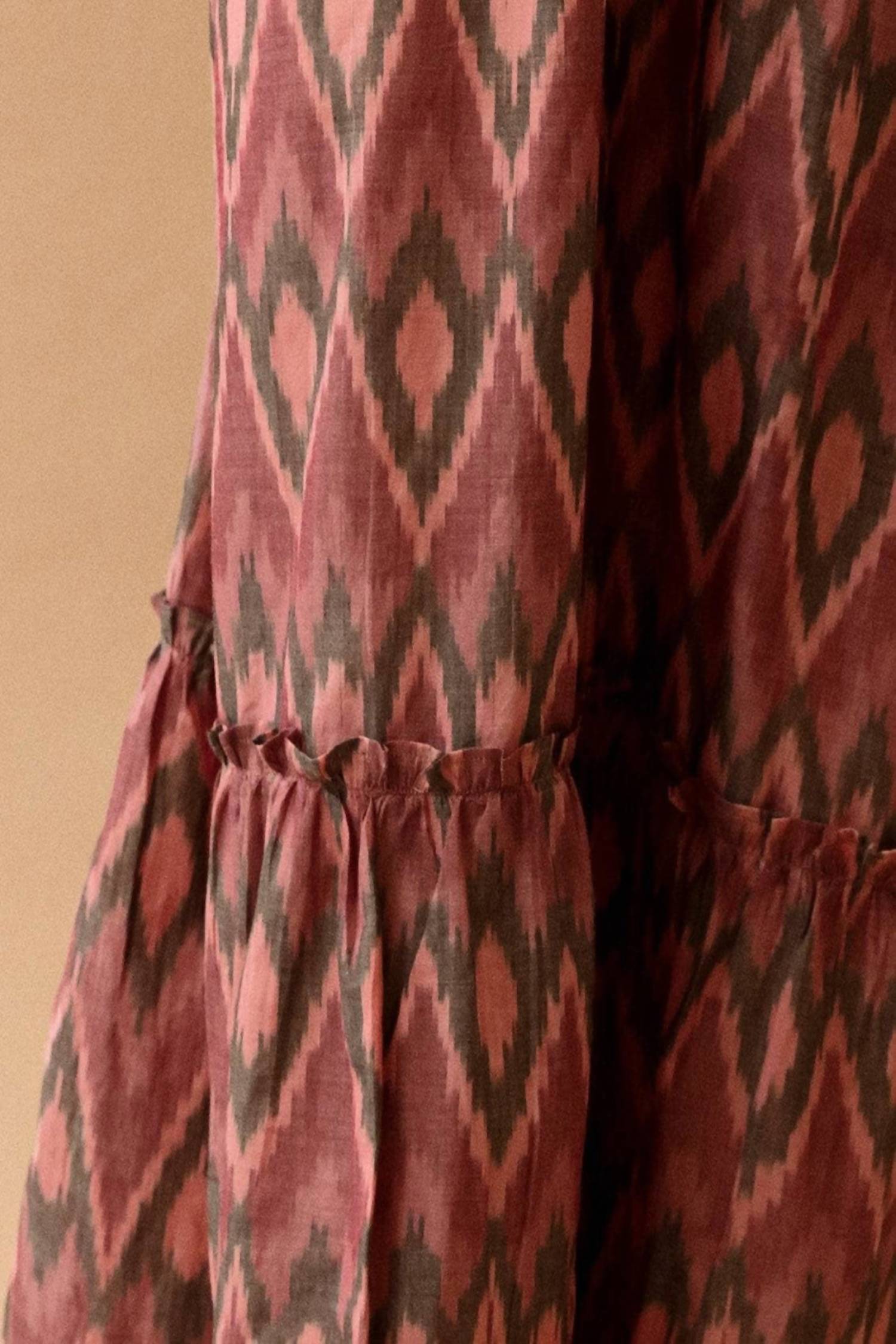 A maxi dress that is just as cute as it is comfortable. Introducing the Abbie Long Dress by Guadalupe Design, a vibrant maxi dress perfect for summer vacations. This red dress features a trendy V-neck with spaghetti straps and an empire waist silhouette, crafted from 100% cotton for breathable comfort. Closure: Pull on. Care instructions: Machine wash in cold water, line dry, low drying, steam iron, wash dark colors separately, do not bleach, and it is also dry cleanable. Ideal for making a maximalist statement, this dress comes from a brand that values artisan craftsmanship.
