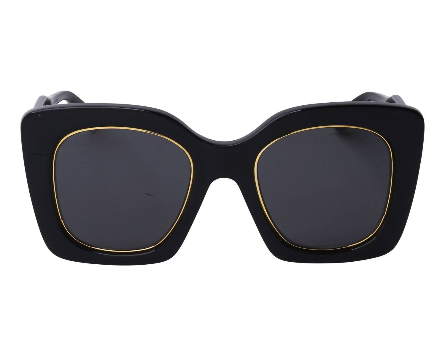 Apresentamos os ÓCULOS DE SOL FEMININOS GG1151S da Gucci, um acessório chique para a mulher moderna. Estes óculos de sol estilo gatinho com aro fechado apresentam uma armação elegante em acetato preto brilhante e lentes cinza sólidas. Com excepcional proteção UV nível 3, são perfeitos para quem gosta de moda. As dimensões incluem lentes de 51 mm de largura, ponte de 23 mm e hastes confortáveis ​​de 145 mm.