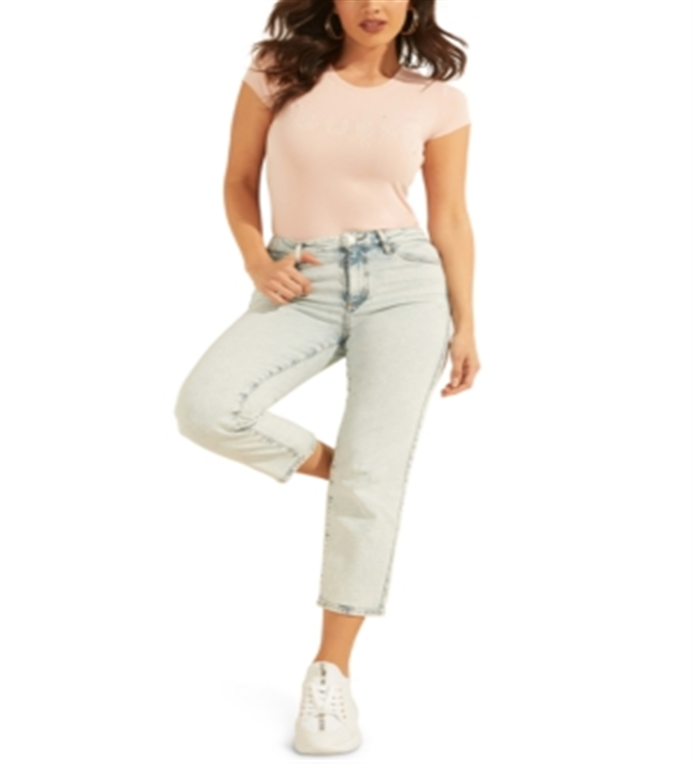 Camiseta feminina GUESS com logo e contas, rosa, tamanho GG