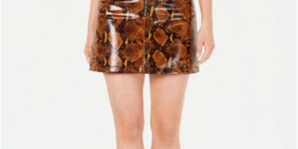 Minissaia Guss Feminina Yolanda com Estampa de Cobra em Couro Sintético Laranja Tamanho X-G
