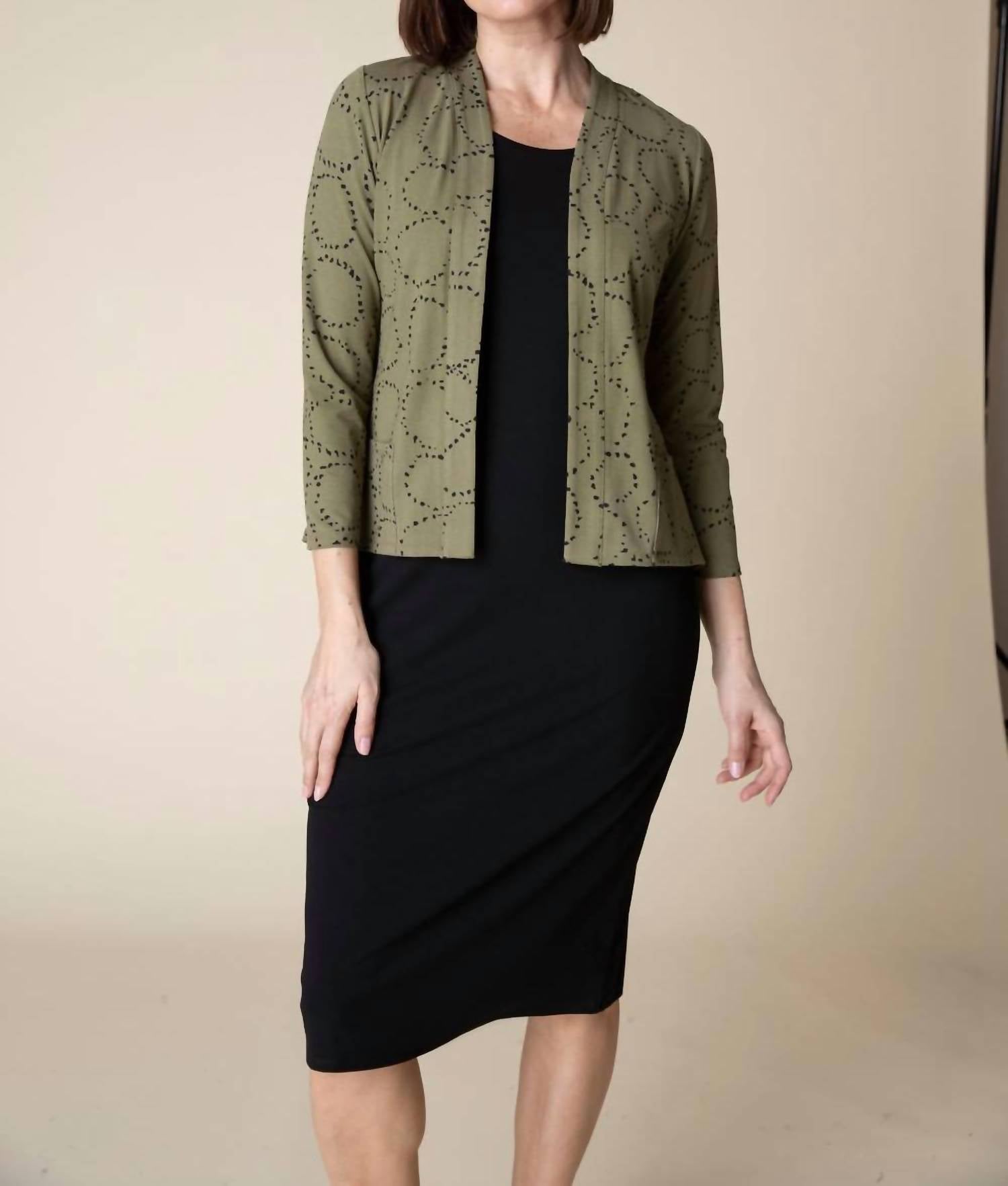 Introducing the Core Travel Circles Front Jacket by Habitat, a stylish and functional piece in vibrant green. This jacket features long sleeves and a convenient pull-on closure, ideal for transitional weather. Crafted from 95% Rayon and 5% Spandex, it offers comfort and a perfect fit. Care for this versatile jacket by machine washing cold on a gentle cycle with like colors; avoid bleach, tumble dry low, and cool iron if necessary.