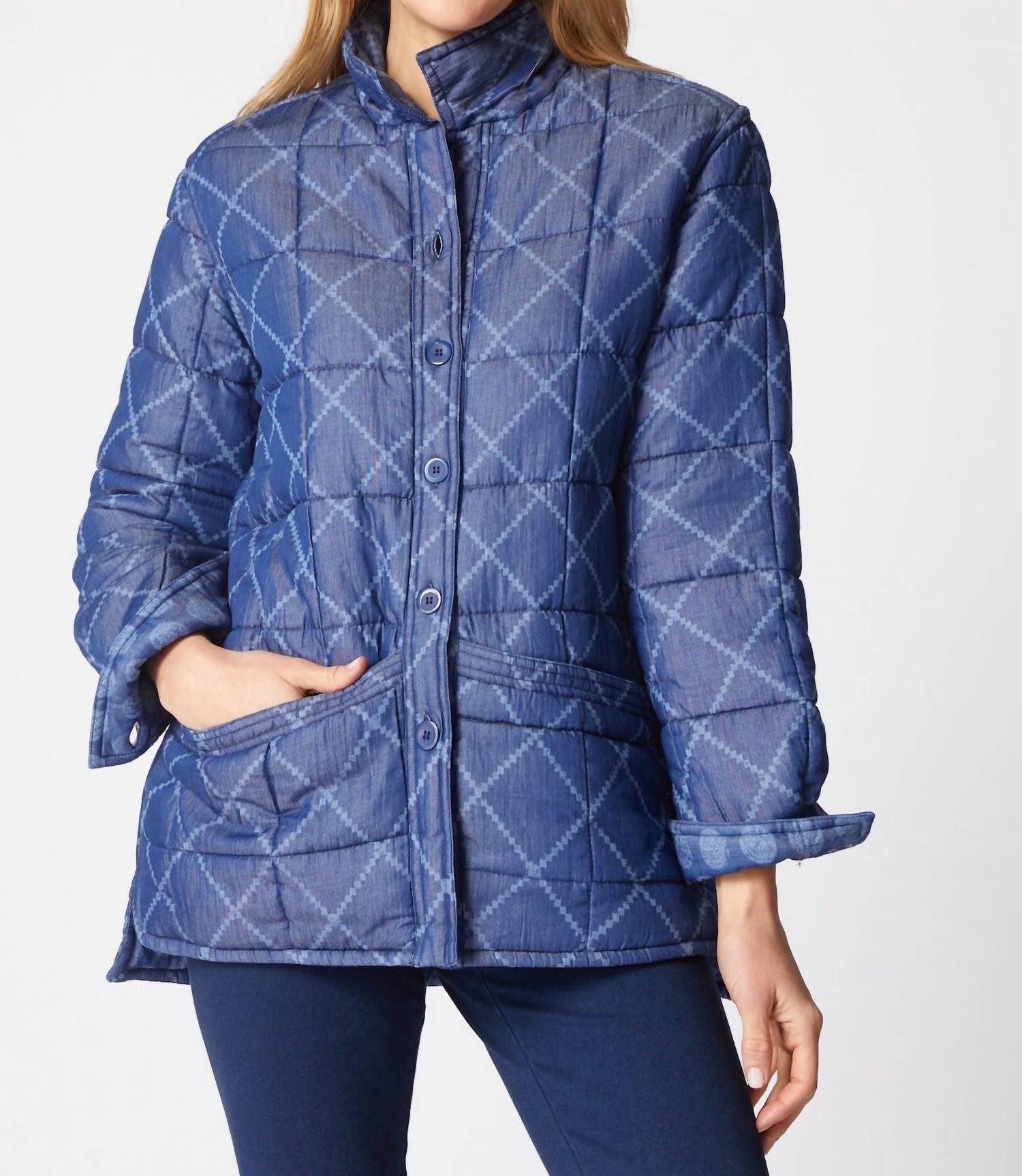 Cozy, cute and timeless. The puffer jacket that will keep you warm all season long. Meet the Cozy Quilts Chloe Shacket by Habitat, a perfect blend of style and warmth for the fall season. Crafted in denim blue with long sleeves and made from quality cotton, this shacket stands out with its patterned design while ensuring comfort for travel. Designed with a classic collar and practical button closure, it features pockets for added convenience. Easy care includes machine wash and line dry, making it a straightforward addition to your wardrobe.