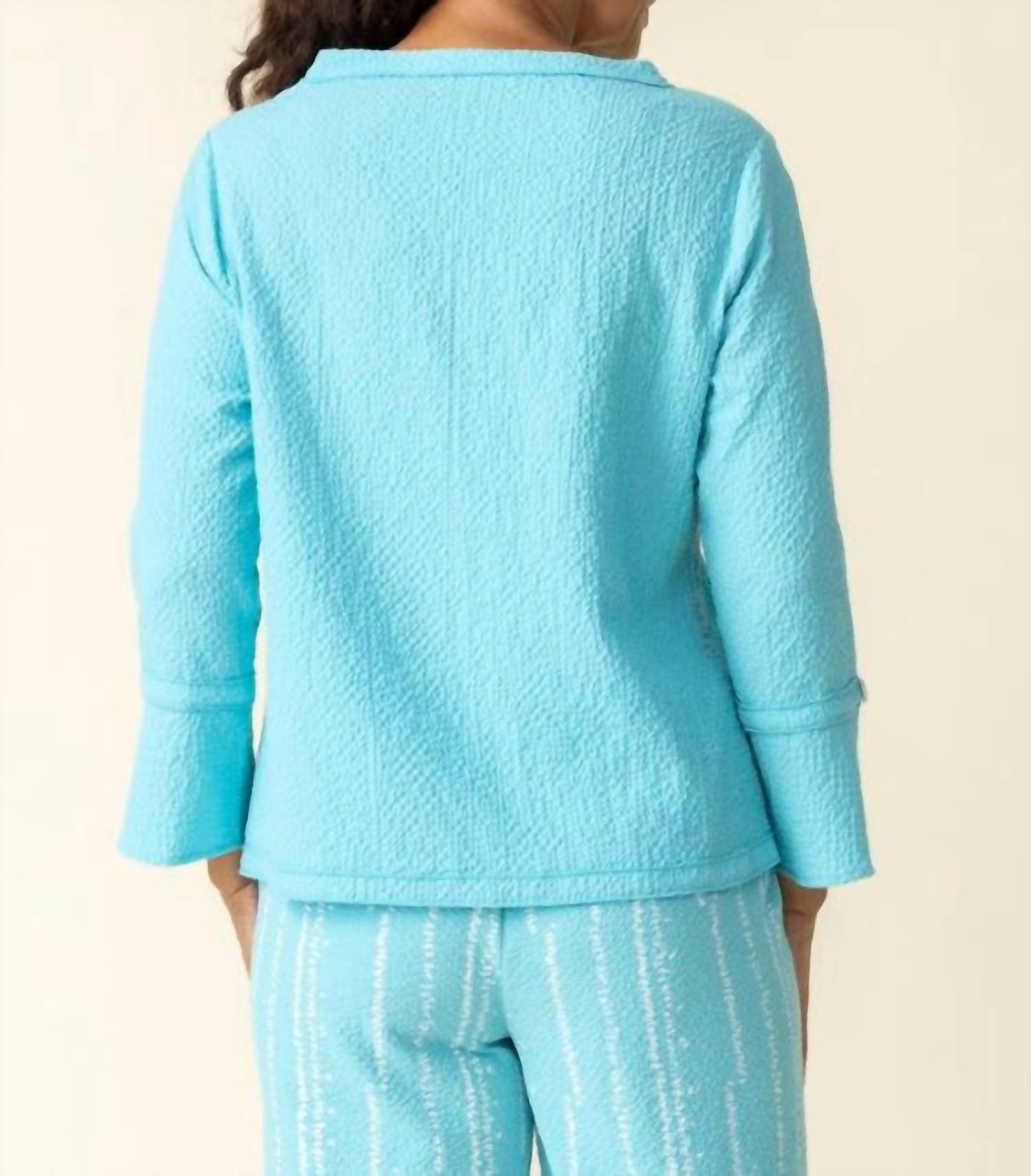 Eleve seu guarda-roupa com a blusa pulôver com mangas franzidas e flutter da Habitat, ideal para viagens e trabalho. Esta blusa com mangas três quartos na cor Malibu apresenta um padrão texturizado e uma gola redonda confortável. Confeccionada em 68% rayon, 30% poliéster e 2% elastano, oferece um fecho pull-on para facilitar o uso. Instruções de cuidado incluem lavagem à máquina e secagem em tambor.