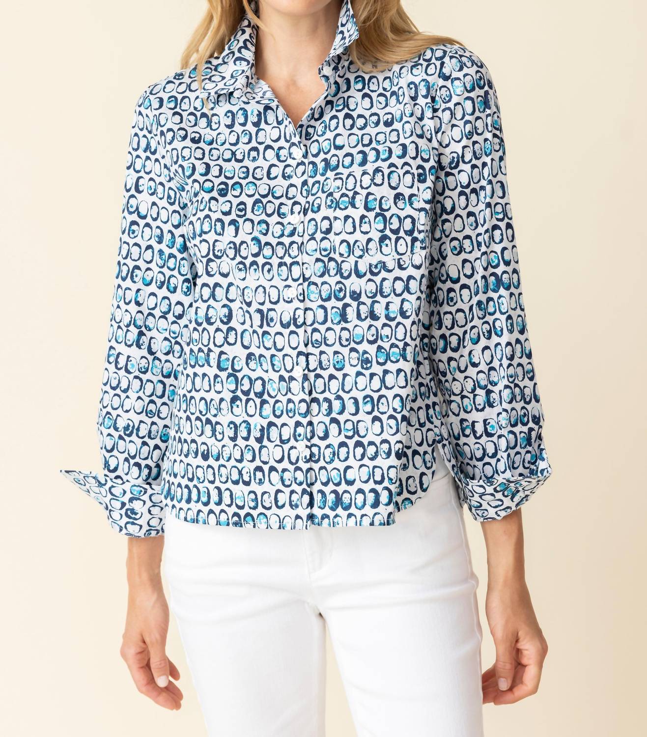 A classic button down shirt that will never go out of style. Upgrade your travel wardrobe with the Perfect Travel Dot Shaped Shirt by Habitat. This navy button-down features a lively pattern and practical long sleeves, making it ideal for both fall adventures and vacation ensembles. Made from a cotton blend of 78% cotton, 20% nylon, and 2% spandex, it offers comfort and a subtle stretch. Closure: Button closure. Care: Machine wash and tumble dry.