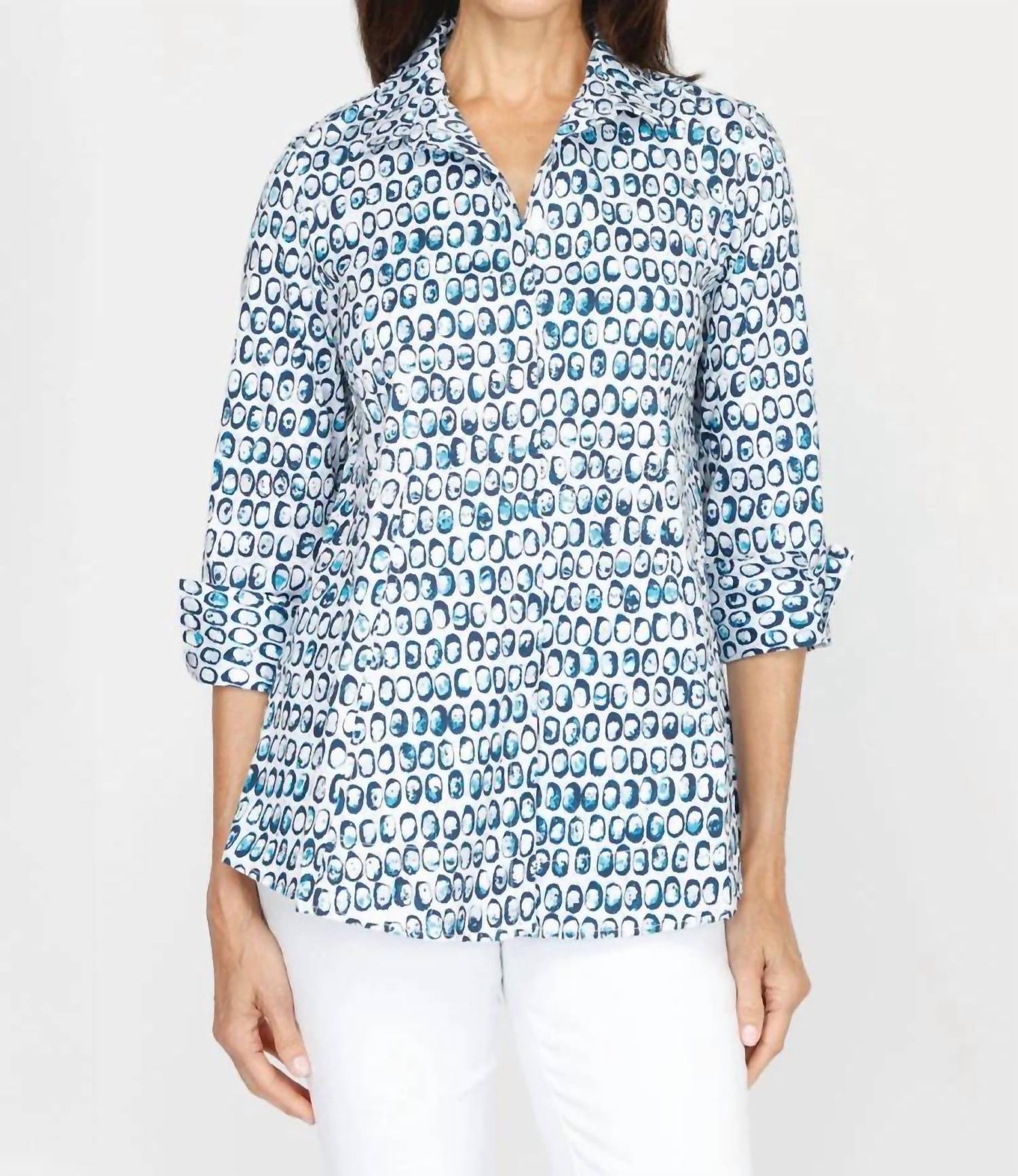 Caimento perfeito, design charmoso, tecido macio. Você vai adorar tudo nesta camiseta de manga comprida. Descubra a Camisa de Viagem com Bolinhas Perfeita da Habitat, uma adição elegante ao seu guarda-roupa de primavera. Com seu design estampado azul-marinho, esta camisa de manga comprida oferece um ajuste confortável com sua composição em mistura de algodão: 78% algodão, 20% náilon e 2% elastano. A camisa possui gola clássica e fecho prático de botões, tornando-a ideal para uso profissional ou eventos de noivado. Para fácil manutenção, lave na máquina e seque no varal.