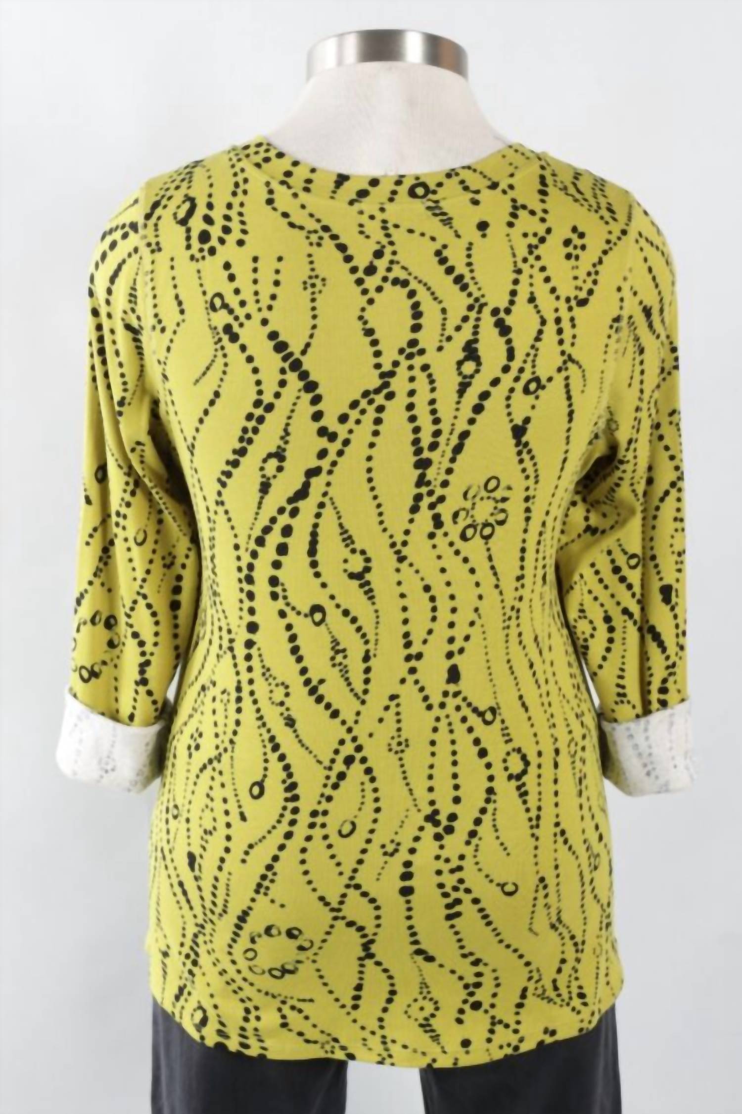 Embrace the versatility of this tunic-style blouse, expertly crafted for seamless layering or perfect to wear on its own. Its detailed design and comfortable fit make it a perfect addition to any closet. The Women's V-neck Tunic Top by Habitat in a captivating pear color is designed to elevate your wardrobe with its unique wavy dot pattern. Featuring three-quarter sleeves and a deep V-neckline, this tunic offers a flattering and comfortable fit. Made from 100% cotton, it measures 27" in length for size small. Care instructions include machine wash cold and tumble dry low for easy upkeep.