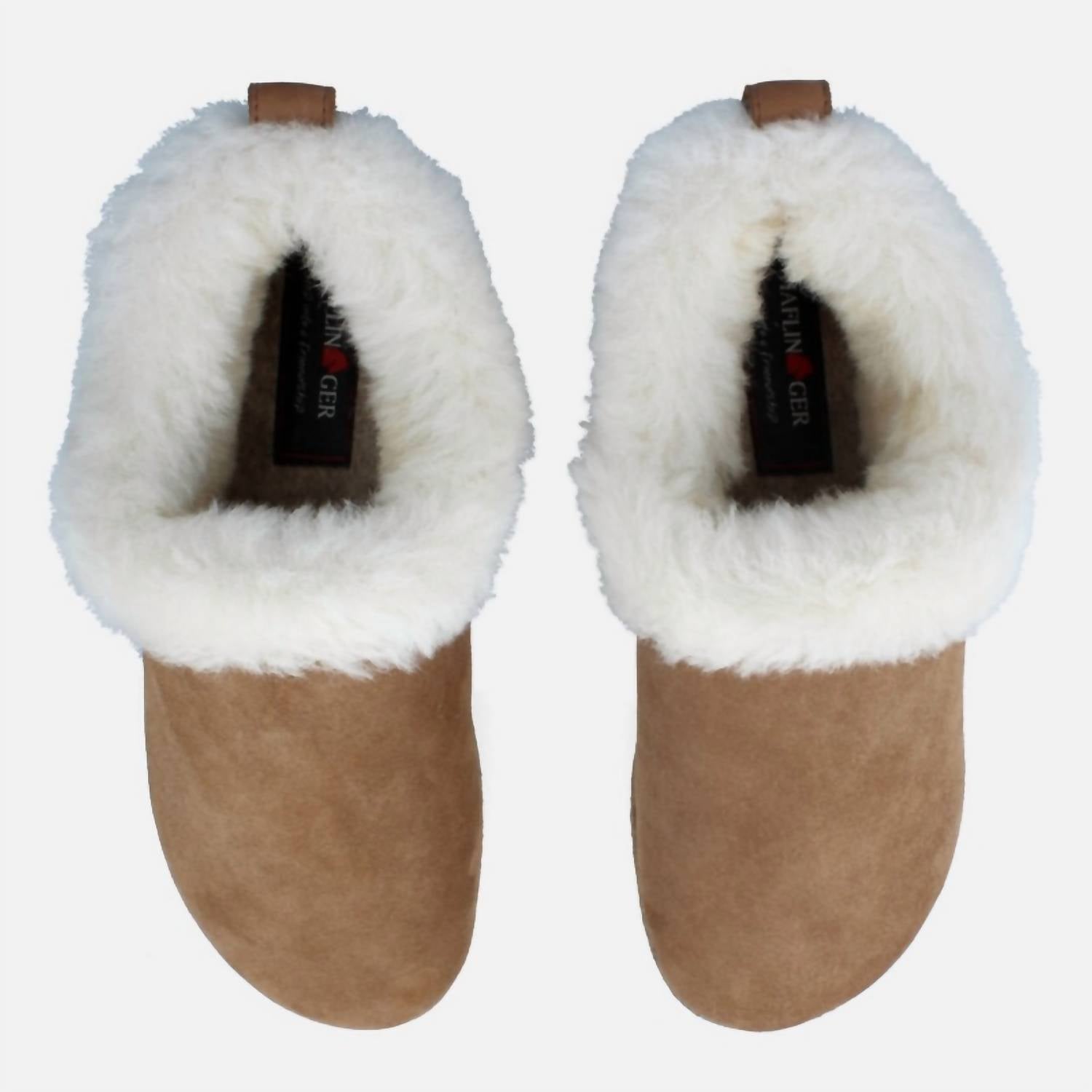 Experience unmatched comfort with HAFLINGER's Unisex Iceland Cozy Shearling Clog in a charming chestnut hue. Crafted from soft lambskin leather and genuine shearling, these clogs promise plush comfort with a touch of rustic style. The anatomically designed cork and latex footbed offers arch support, while the felt lined insole ensures a moisture-free environment for your feet. Made in Germany, these clogs feature a slip-resistant rubber sole, perfect for snuggling in style at home.