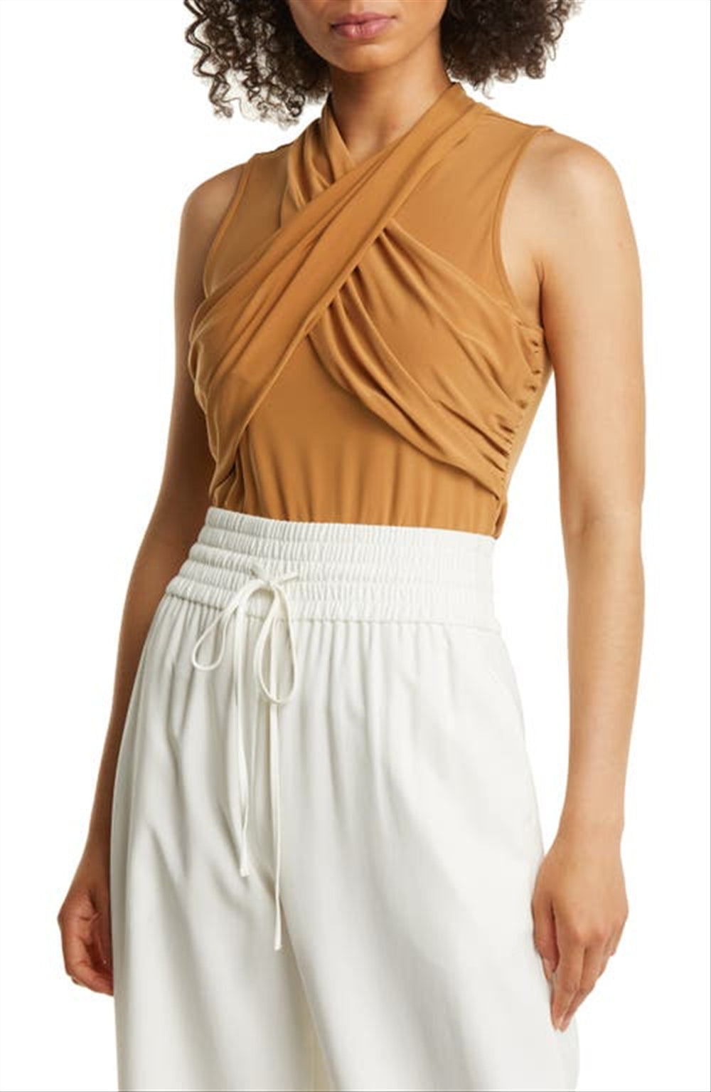 Ajuste confortável | Material de alta qualidade | Cor Tan Sugar | Design cruzado | Tamanho GG | Adequado para sobreposições | Estilo versátil | Estética moderna | Tecido respirável | Exclusivo da Nordstrom