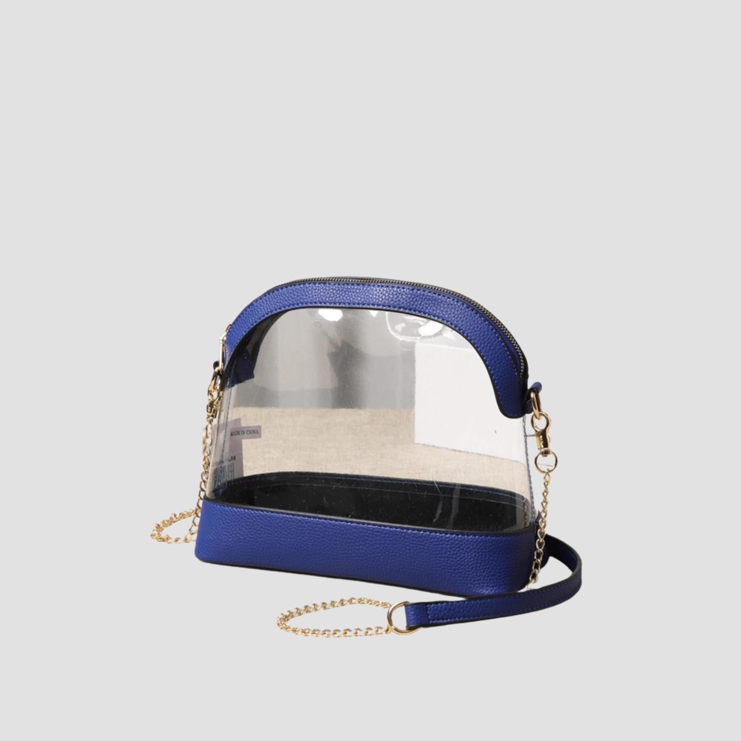 Introducing the Women's Concert Gameday Crossbody Bag by Hana, a stylish and functional accessory crafted from durable PVC. This chic shoulder bag in navy is perfect for adhering to stadium policies while still showcasing personal style. Its transparent design allows for easy visibility of contents, ensuring convenience at any event. Make every game day a breeze with this must-have accessory in your collection.