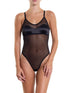 Embrace your daring side with the Dark & Dangerous Bodysuit by HANKY PANKY, a glamorous addition to your wardrobe. This sleeveless bodysuit features a luxurious stretch satin and mesh construction, with a revealing thong back that artfully teases while maintaining elegance. Composition: Satin - 95% Polyester, 5% Spandex; Mesh - 93% Polyamide, 7% Spandex; Crotch Lining - 100% Cotton. Closure: Hook and eye closure at the center back. Care: Hand wash in cool water with mild detergent, then line dry or hang to dry.
