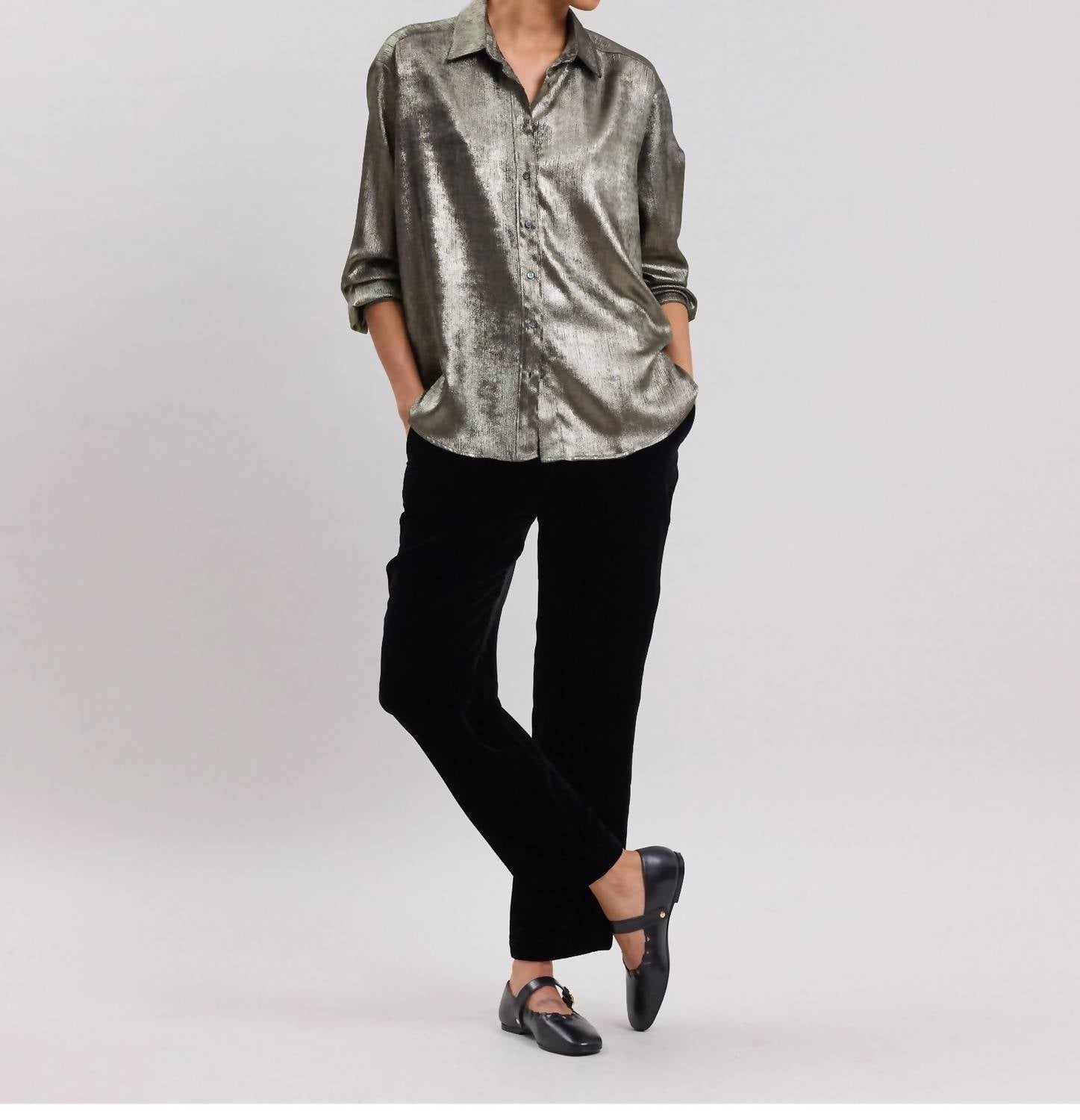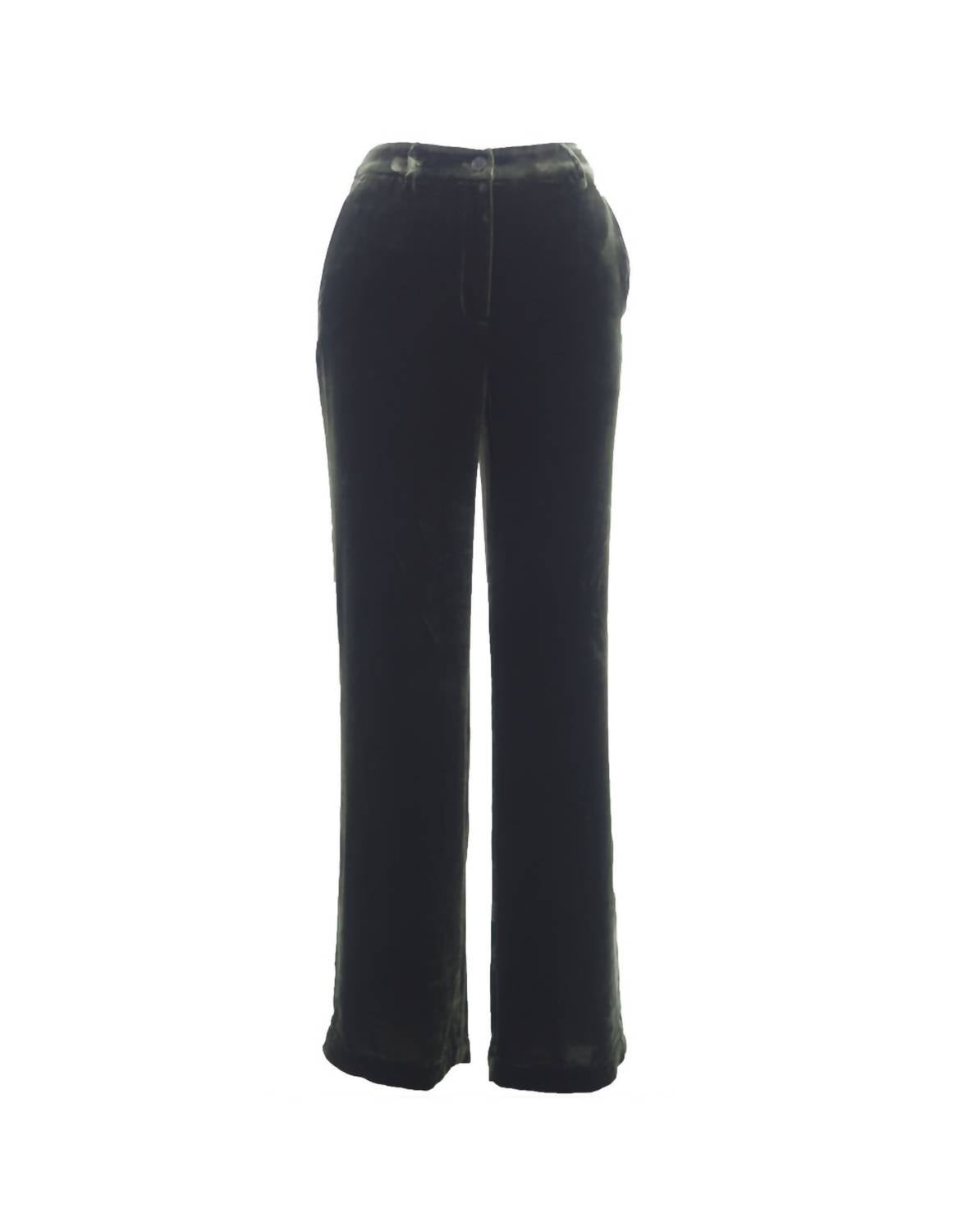 Experimente um estilo atemporal com a Calça Pilgrim da Hartford, perfeita para ambientes casuais e formais. Confeccionada em uma mistura luxuosa de 82% viscose e 18% seda, esta calça garante um caimento excelente com seu design descontraído e cós alto. Com uma cor verde-exército sólida, fecho por botões e bolsos práticos, ela é uma adição versátil a qualquer guarda-roupa. Ideal para a mulher exigente que busca conforto e sofisticação em seu conjunto.
