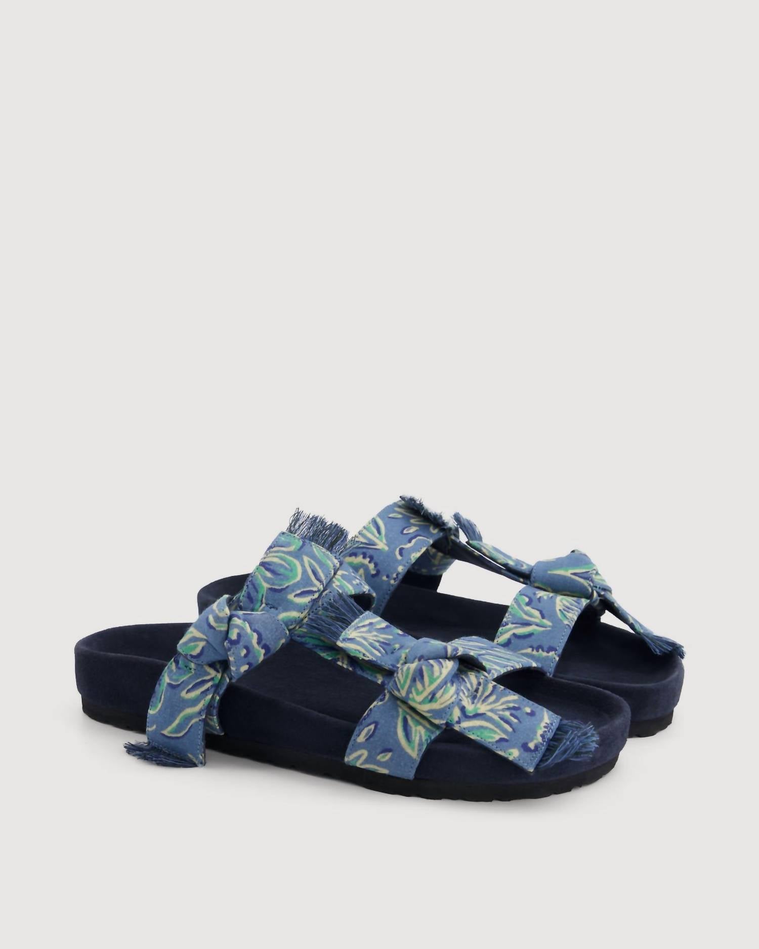 Step into summer with Hartford's Women's Ervin Sandals, an essential for both town strolls and beach escapes. Crafted with double knotted printed cotton straps and an elegant suede leather sole, these sandals offer a chic Boho style. Made in India, they feature a flat heel and open toe for comfort and style. Perfect for holiday parties, just ideal for a Thanksgiving outing.