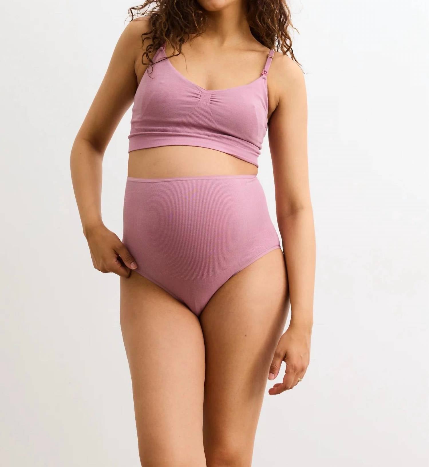 The most comfortable and stylish bra that you'll reach for daily. Introducing The Essential Nursing & Pumping Bra by Hatch, a seamless elderberry bra crafted from a finely ribbed, body-hugging modal blend that maintains its shape. Designed with nursing clasps, adjustable straps, and a pull-down feature, it's perfect for easy feeds and pumping convenience with discreet slits. The solid pattern exudes elegance, and being Oeko-Tex certified means it's free of harmful chemicals. Care instructions: machine wash and line dry for lasting quality.