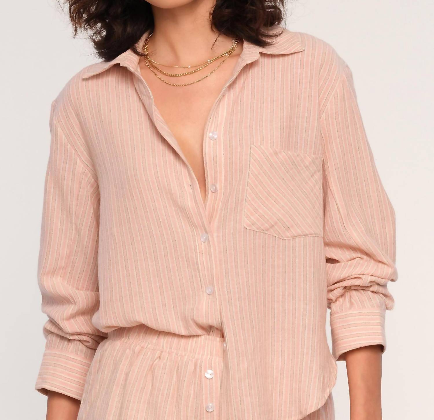 A match made in heaven. This two-piece set is so cute, you'll wish you could wear it out of the house! Did we mention how comfortable it is, too? You may want two sets! Elevate your lounge collection with the Heartloom Cliff Set in a charming Candy stripe, perfect for spring and special occasions like Valentine's Day and anniversaries. This women's loungewear set features a long sleeve top with a classic collar and a button down closure, accompanied by bottoms with an elastic waist for comfort. Crafted from 100% cotton, the set exudes both style and coziness. Care instructions include hand washing and line drying for long-lasting wear.
