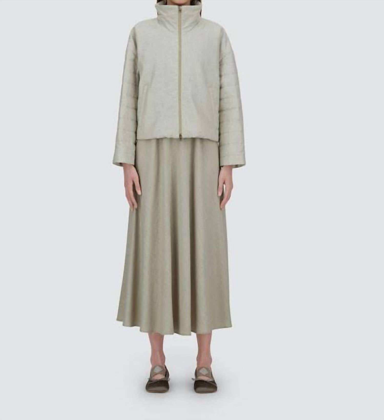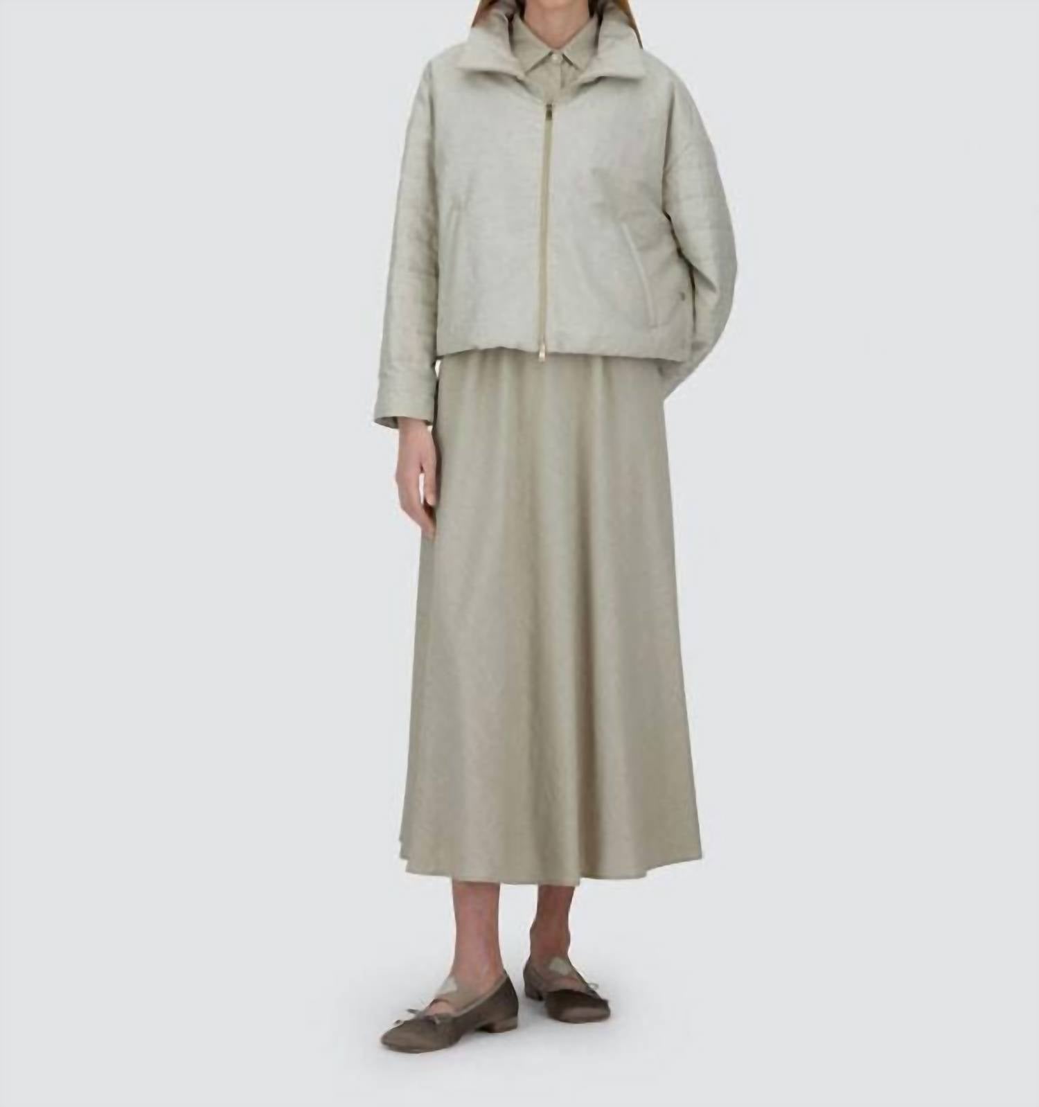 A classic fit that works just as good buttoned as it does left open. Experience the effortless elegance of the Herno Linen Quilted Sleeve Jacket in a sophisticated champagne hue. This women's jacket features long sleeves with chic striped quilting and a minimalist design, enhanced with lurex inserts for added shine. Made in Italy, it boasts a cotton-blend composition and a two-way zip closure for ease and style. Designed with a high collar and practical side pockets, this piece adds a touch of Herno-quality to your casual winter wardrobe.