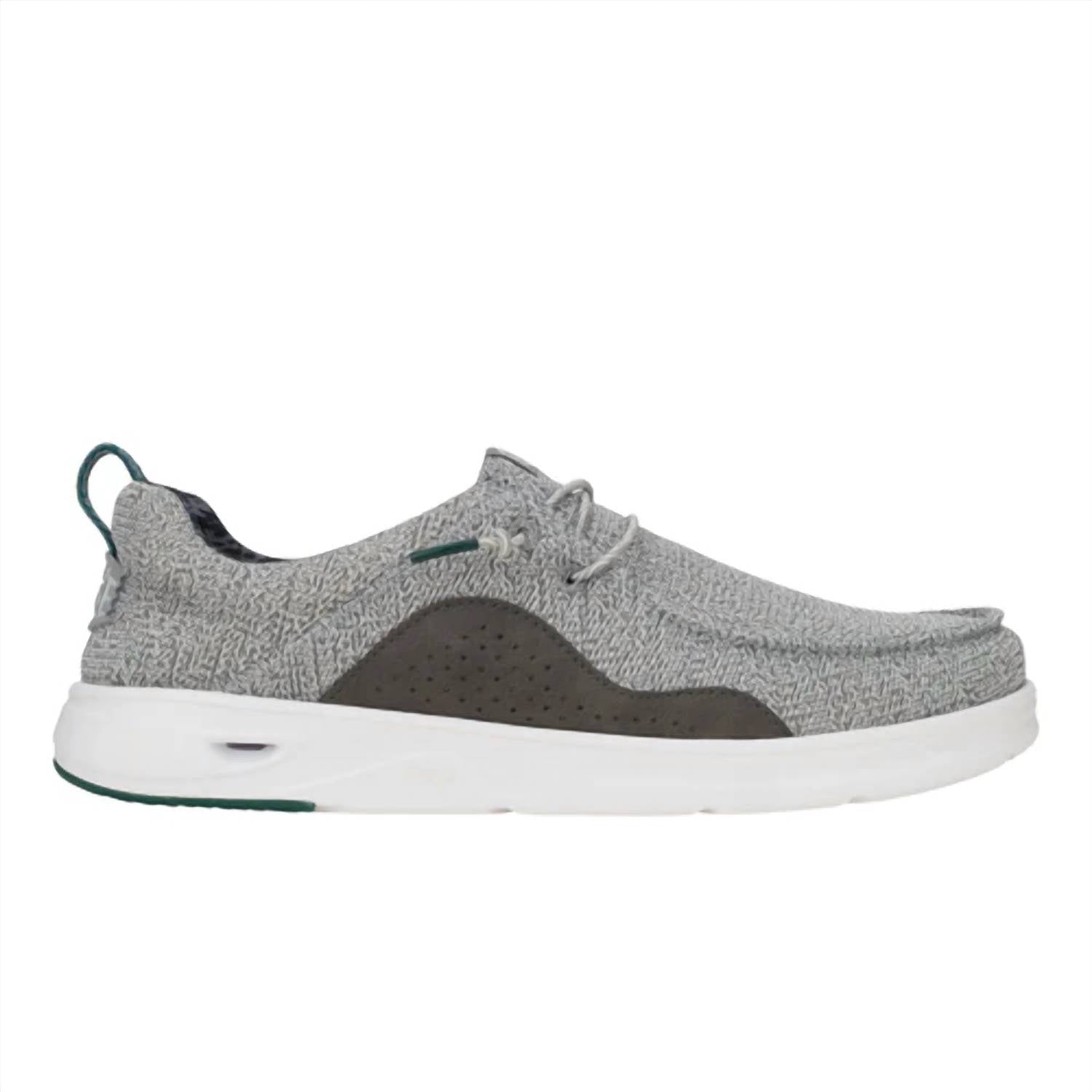 Experience comfort and style with the Men's Wally Hey2o Mesh Lace Shoe by HEY DUDE, featuring a breathable textile upper in Monument Grey/Dawn Blue. The easy-on system and elastic laces ensure a perfect fit, while the drainable EVA midsole and perforated removable insole keep your feet dry and comfortable. Designed with a relaxed fit, these loafers cater to laid-back vibes with TPR pods on the outsole for enhanced durability and grip. Perfect for travel, this shoe combines functionality and a flat heel with a round toe shape for ultimate ease.