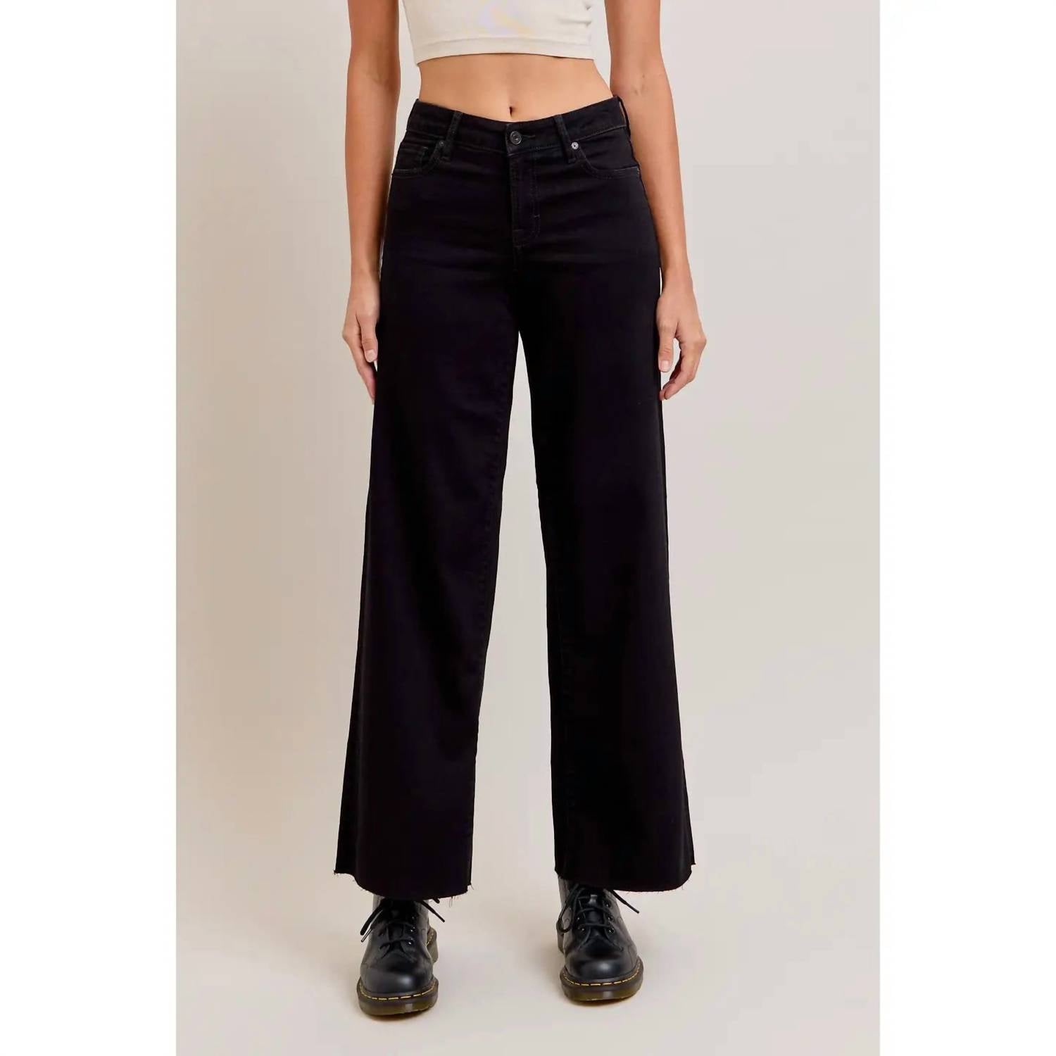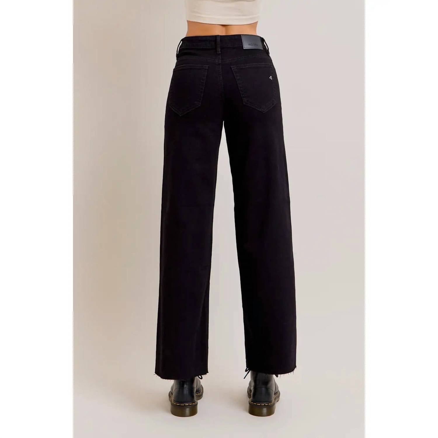 Descubra a Calça Jeans Nori Mid Rise Wide Leg da HIDDEN, confeccionada para uma silhueta elegante em um tom preto sólido e clean. Esta calça jeans oferece cintura média confortável com cós alto e apresenta um corte regular com 78 cm de comprimento. Composição: 100% algodão. Fechamento: botão. A modelo veste tamanho 26 com 24 cm de comprimento.