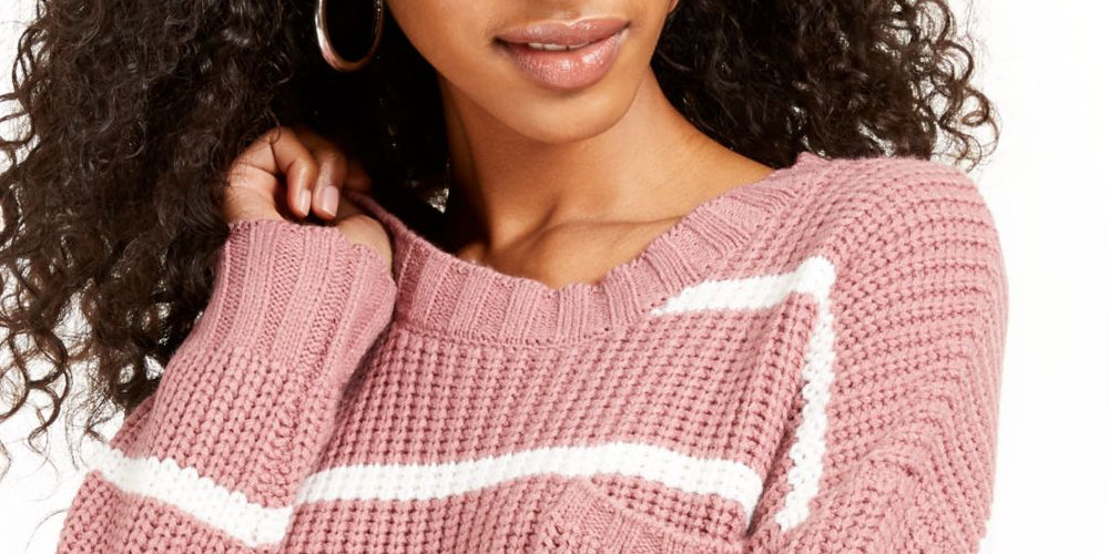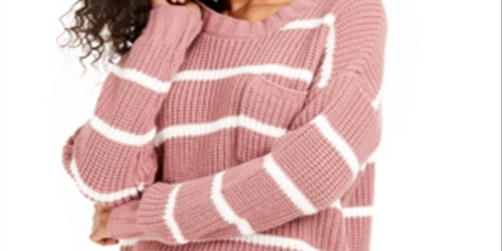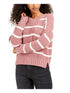 Suéter feminino listrado de manga comprida e gola redonda, tamanho médio, rosa, Hippie Rose
