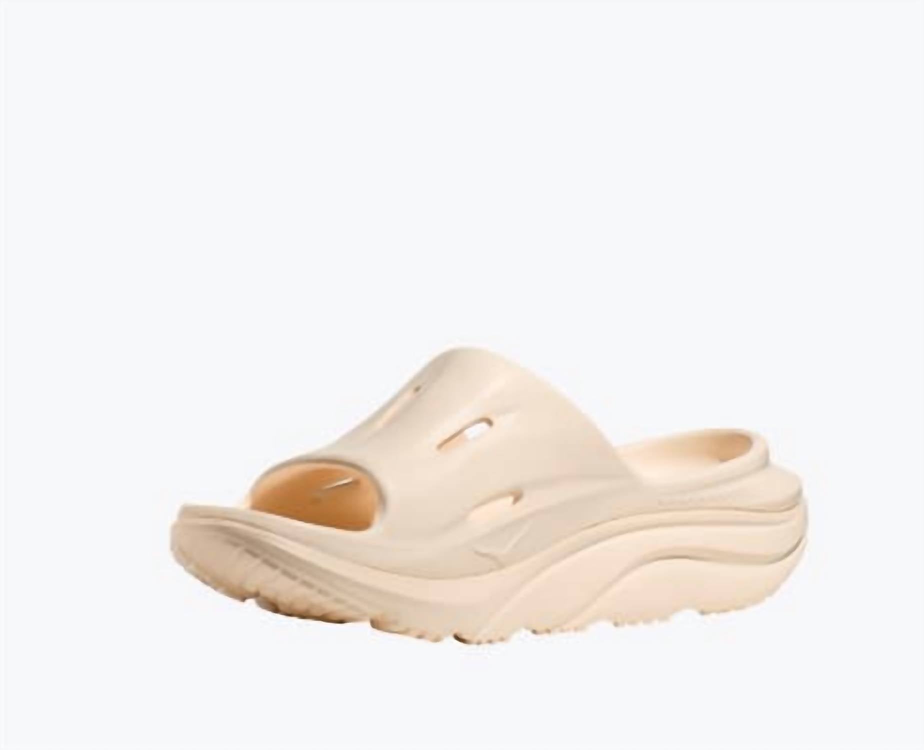 Experience effortless recovery with the Hoka Unisex Ora Recovery Slide in Sand, crafted for ultimate comfort. This ultralight slip-on features a ventilated air flow design and dual-density HOKA geometry for superior breathability. The sustainable sugarcane EVA midsole and IMEVA outsole provide cushioning and support for relaxation moments. Ideal for casual downtime, this slide merges function and eco-conscious style.