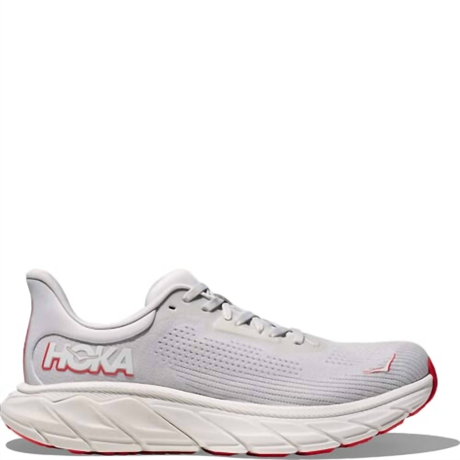 Step into style and support with the Women's Arahi 7 Running Shoes from Hoka, presented in a captivating Cosmic Grey/Ruby Red colorway. Engineered with a breathable flat-knit upper and a plusher tongue for enhanced comfort, these shoes incorporate our unique J-Frame™ technology for superior stability. The design features an Ortholite® sockliner, a CMEVA midsole, and is approved by the American Podiatric Medical Association. Perfect for your summer fitness routine, these shoes are tailored for the active woman seeking athleisure aesthetics.