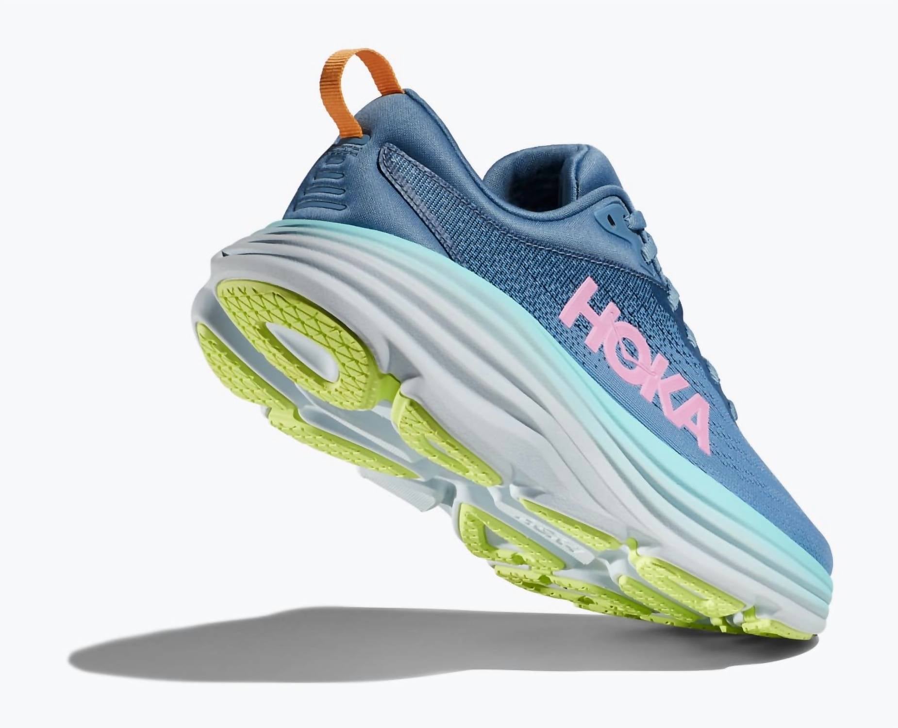 Step into each day with confidence in the Hoka Women's Bondi 8 Running Sneakers, showcasing a vibrant colorway. Designed with engineered mesh construction and partially gusseted tongue, these sneakers offer superior comfort for everyday runs and walks. The design incorporates an Ortholite® hybrid sockliner and a lightweight, resilient foam with zonal rubber placement for optimal weight distribution. Complete with a durabrasion rubber outsole, these vegan sneakers feature sustainable materials like 50% recycled polyester upper mesh and 87% recycled polyester strobel board, making them an eco-conscious choice.