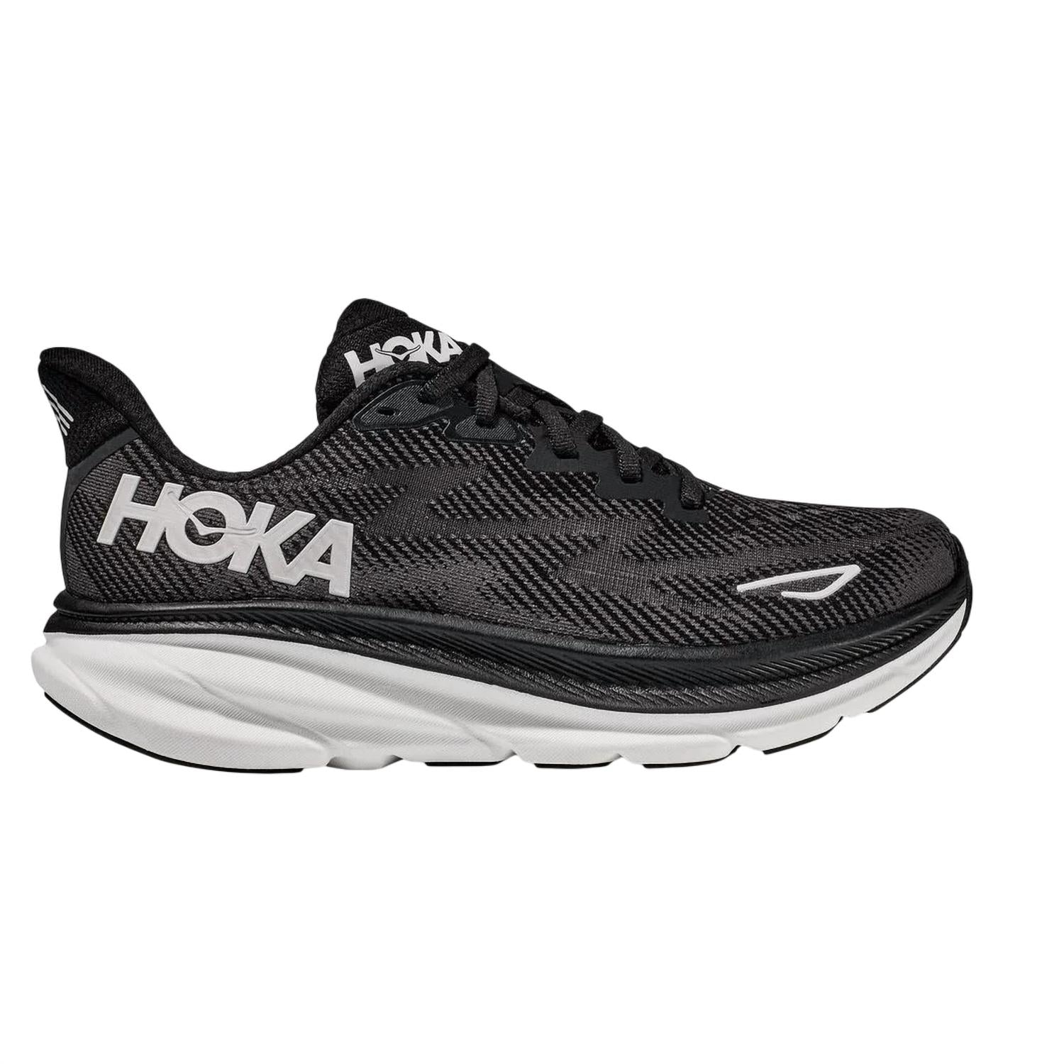 Meet the Women's Clifton 9 Running Shoes by Hoka, an innovative addition to the celebrated Clifton family. These sneakers feature a 2mm boosted stack height for an elevated platform, perfect for tackling challenging miles. Made from vegan-friendly materials, including recycled content and polyester laces, they offer a softer feel and lighter weight while remaining environmentally conscious. The round toe design and classic Black/White color make these a stylish and reliable choice for every runner.