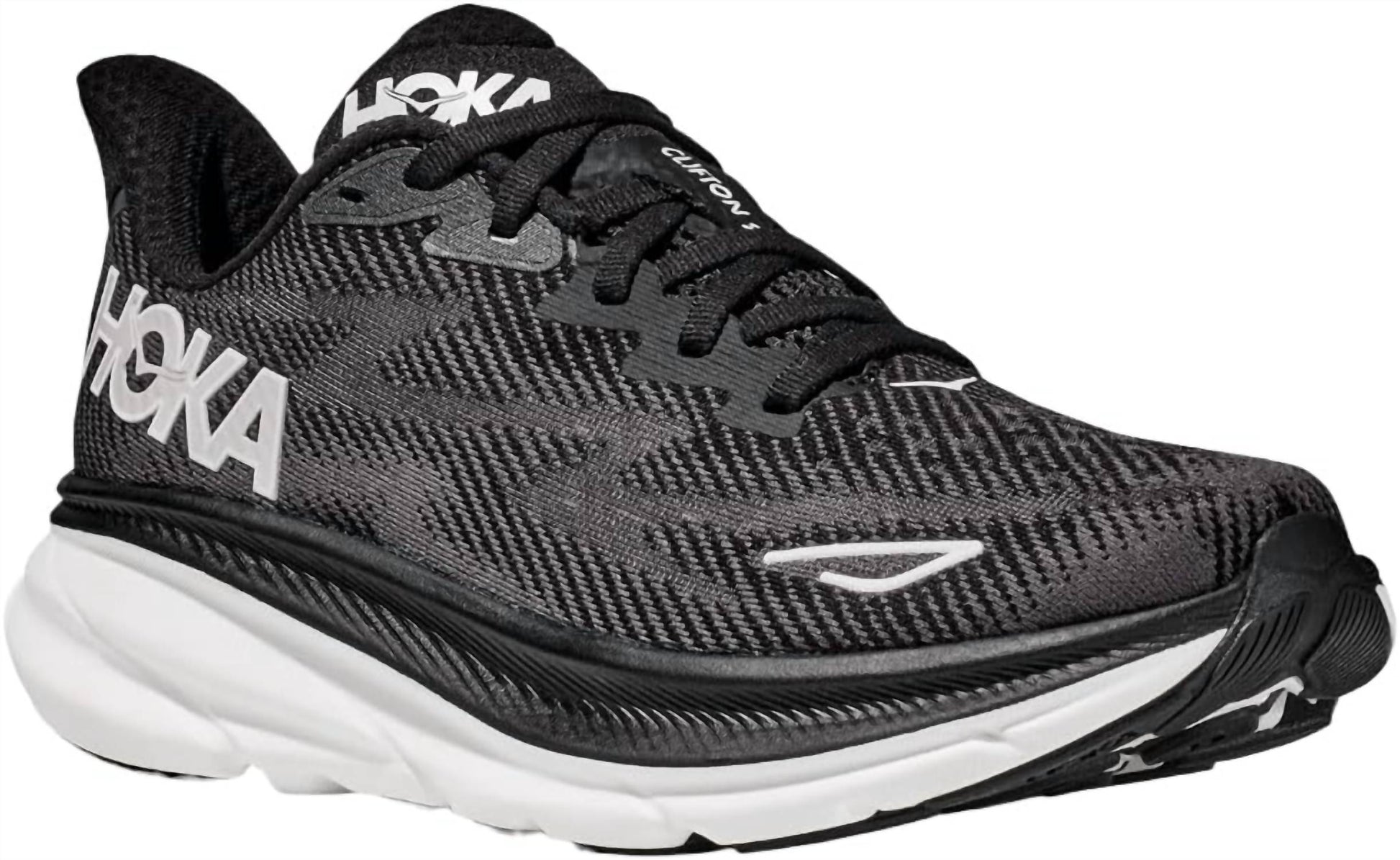 Step up your performance with the Women's Clifton 9 Sneakers by Hoka, crafted for adults with a stylish finish. These sneakers feature a round toe shape and a low platform heel, providing comfort and support. Ideal for women seeking both functionality and modern style in their footwear. Perfect for a variety of activities, these sneakers will seamlessly complement your active lifestyle.