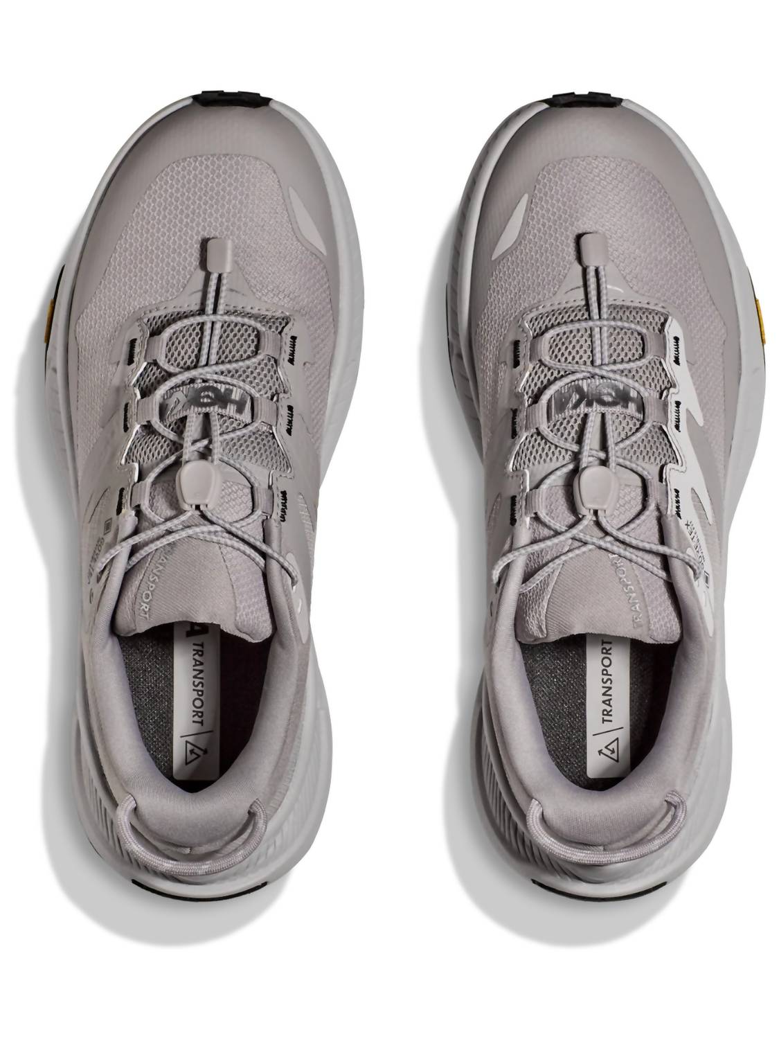 O Tênis Feminino Transport Gtx da Hoka foi projetado para quem busca desempenho e sustentabilidade em condições climáticas adversas. Com fecho de cadarço de acionamento rápido e biqueira resistente à abrasão, este calçado esportivo oferece 360 graus de refletividade. O uso de 35% de EVA de cana-de-açúcar na entressola e o solado Vibram® EcoStep Recycle EVO com 30% de borracha reciclada reforçam sua construção ecologicamente correta. O ajuste invisível GORE-TEX e os elementos 100% de poliéster reciclado garantem excelente gerenciamento de umidade, perfeito para trilhas e caminhadas em ambientes urbanos.