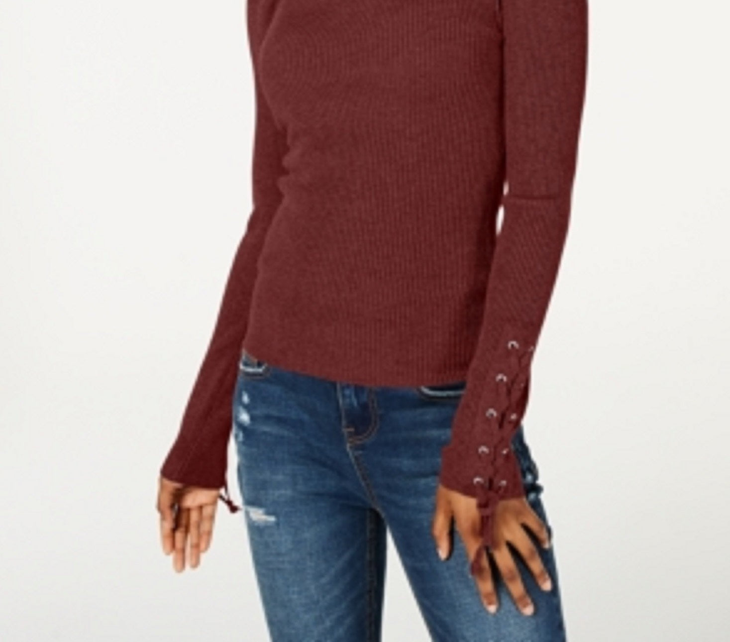 Ask a question about Suéter de malha canelada com cadarço Hooked Up By Iot Juniors, vermelho escuro, tamanho X-G