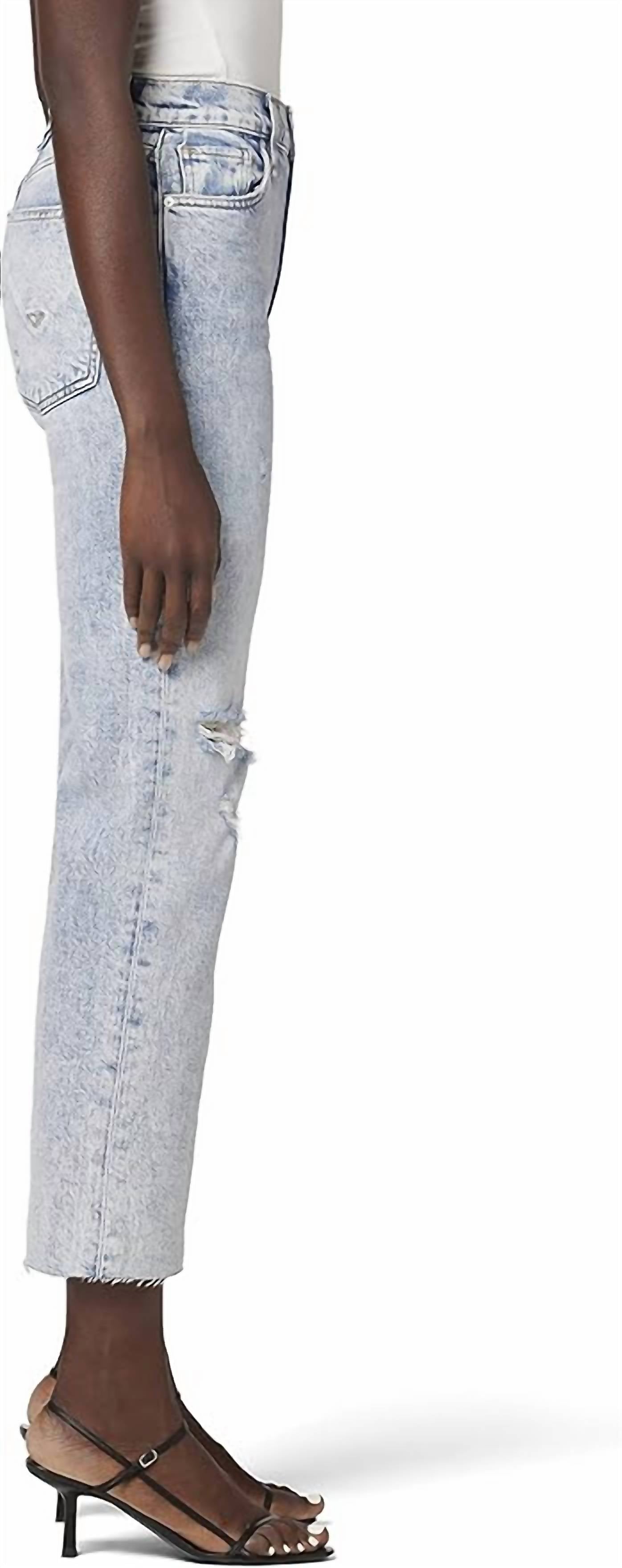 Experience effortless style with the Remi High Rise Straight Cropped Jean by Hudson, tailored for those who embrace streetwear fashion. Designed with a high-rise, slim fit, these light wash jeans feature a cropped straight leg and a classic 5-pocket design. Composition: A blend of cotton, polyester, and elastane in solid denim. Closure: Zip closure. Care: Machine wash and tumble dry. Perfect for spring getaways and Thanksgiving celebrations, with a 26-inch inseam.