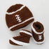 Introducing the Huggalugs Newborn Football Hat and Bootie Set, an adorable choice for your little fan, crafted in brown and white. This charming set, made from 100% acrylic, features a hat with a roll-up brim to ensure a perfect fit. Ideal for memorable first photos or as a thoughtful baby shower gift, it beautifully complements any "Take Me Home" outfit. Designed in China, this matching set brings comfort and style to your baby's wardrobe.