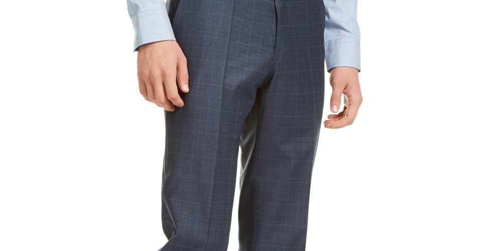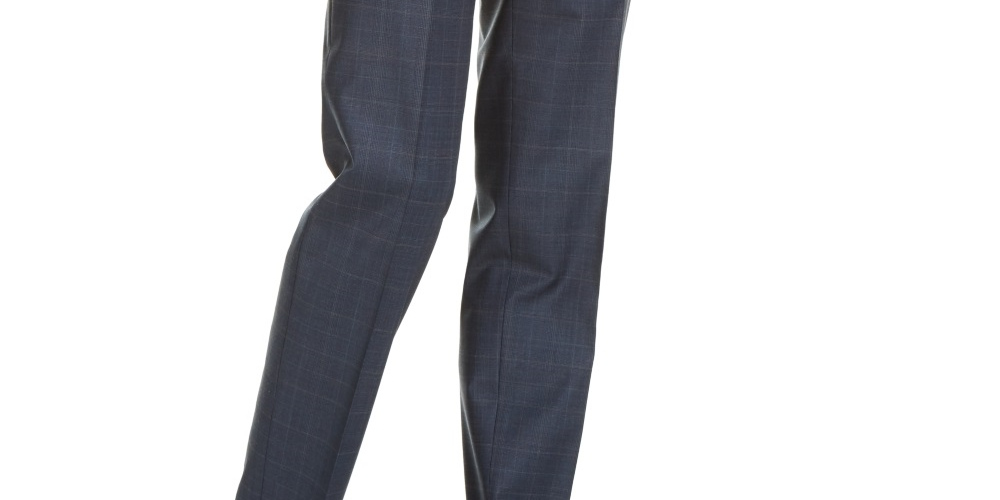 Calça de terno xadrez Hugo masculina, corte moderno, azul, tamanho 38