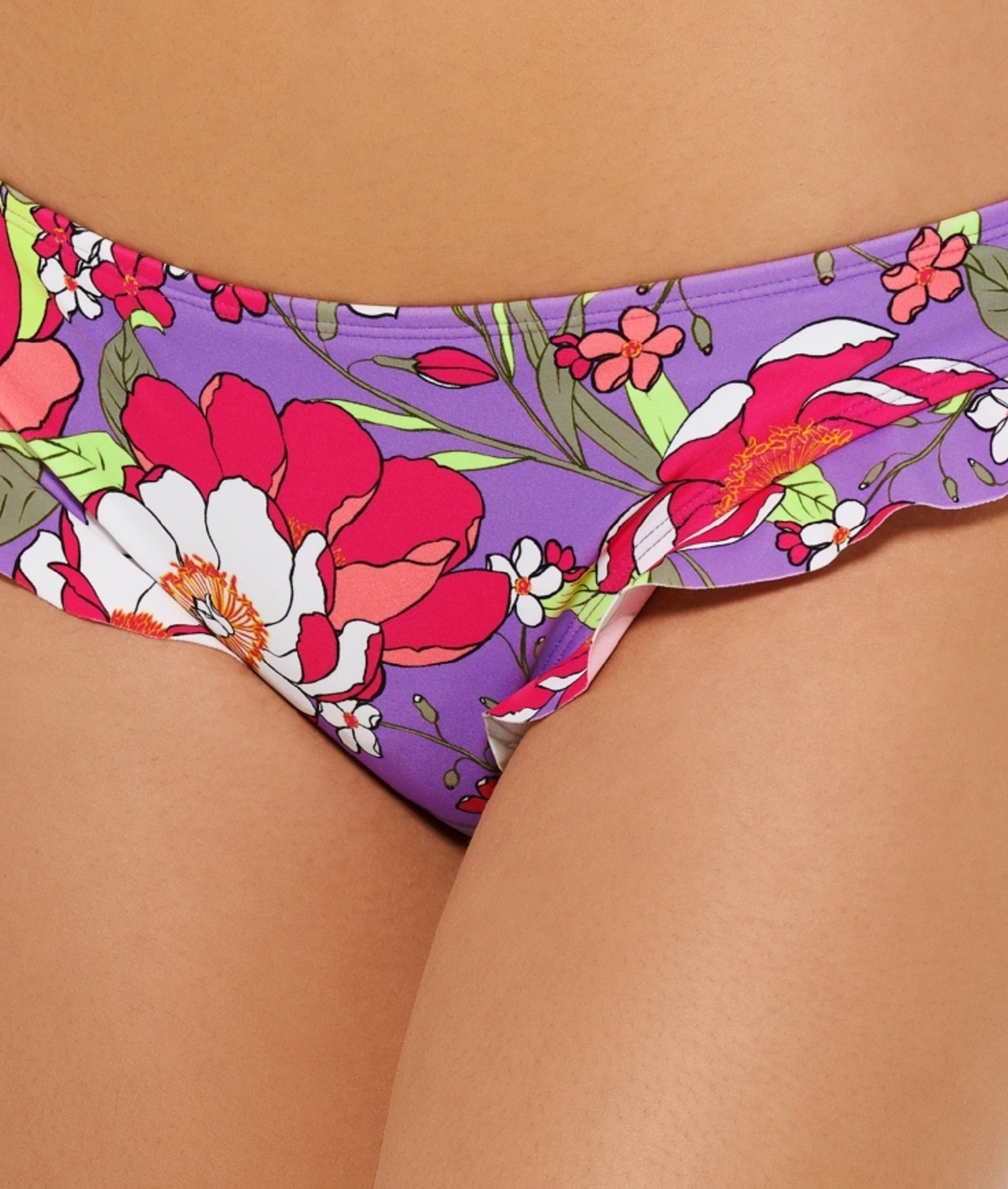Você vai adorar o acabamento com babados delicados da calcinha de biquíni Impressionist da Hula Honey. Combine-a com tankinis, tomara que caia e muito mais. | Ajusta-se nos quadris | Cobertura moderada da parte inferior; caimento curto | Babados nas pernas | Forrado |