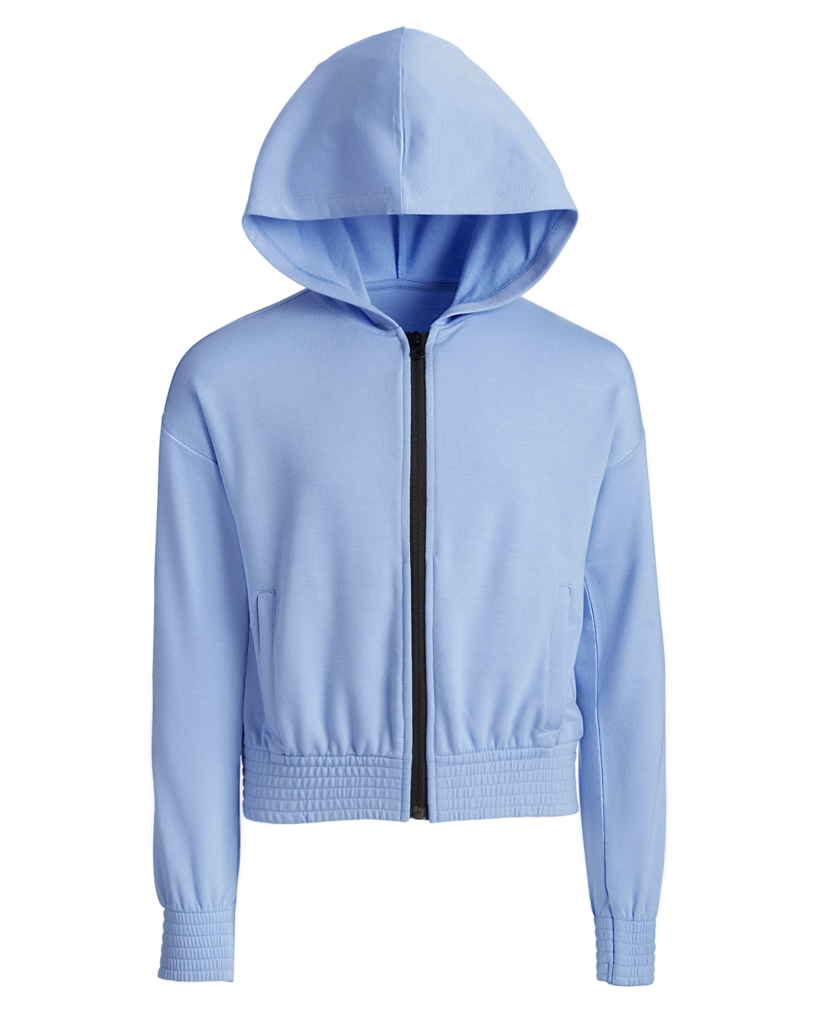 Os detalhes franzidos dão um toque delicado a este moletom com capuz e zíper da Ideology. | Capuz embutido | Fecho de zíper frontal | Bolsos frontais | Detalhe franzido | | Poliéster/rayon/elastano