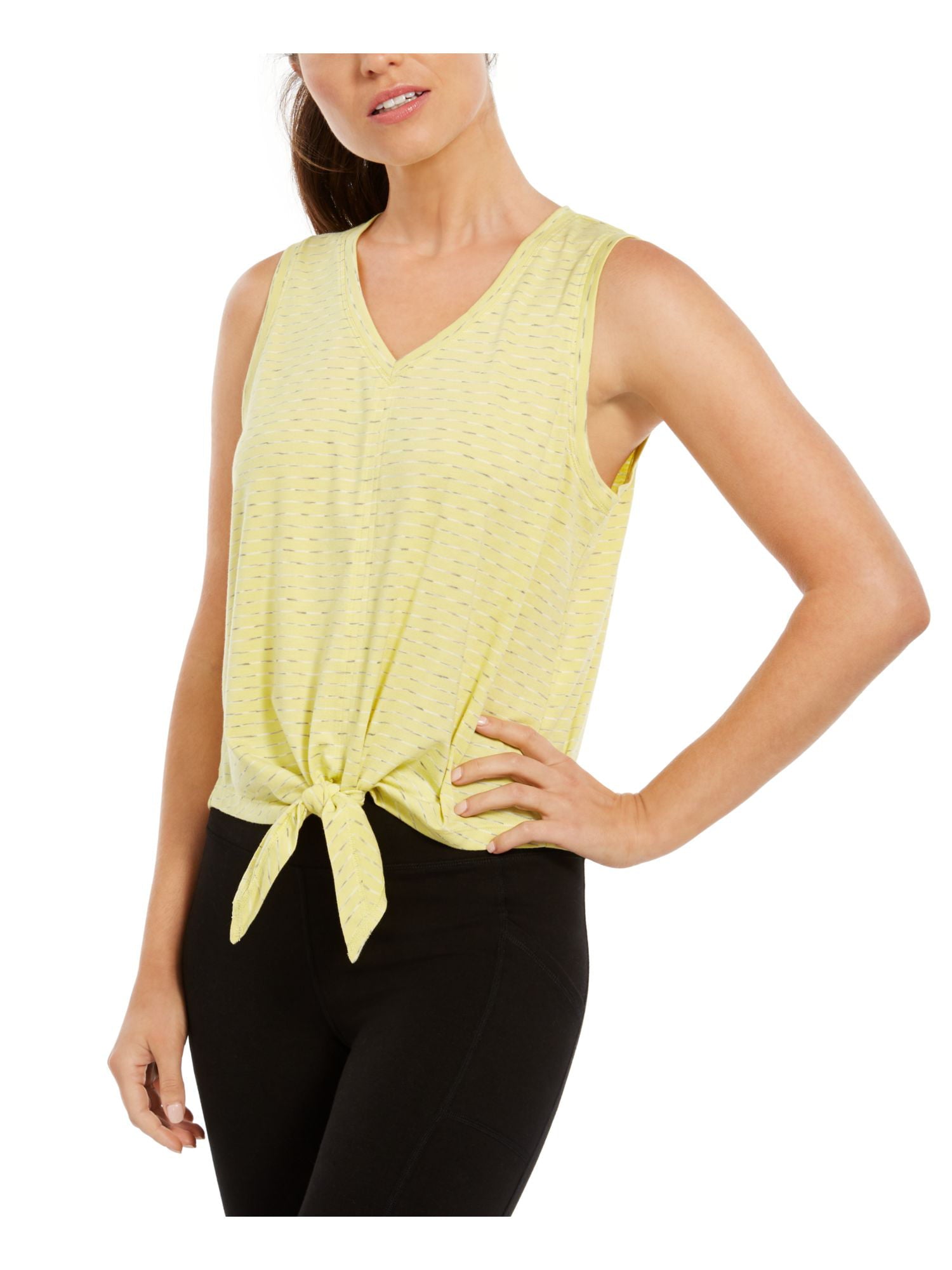 ID Ideology Regata feminina listrada com amarração na parte inferior, casual, amarela, tamanho XX-G
